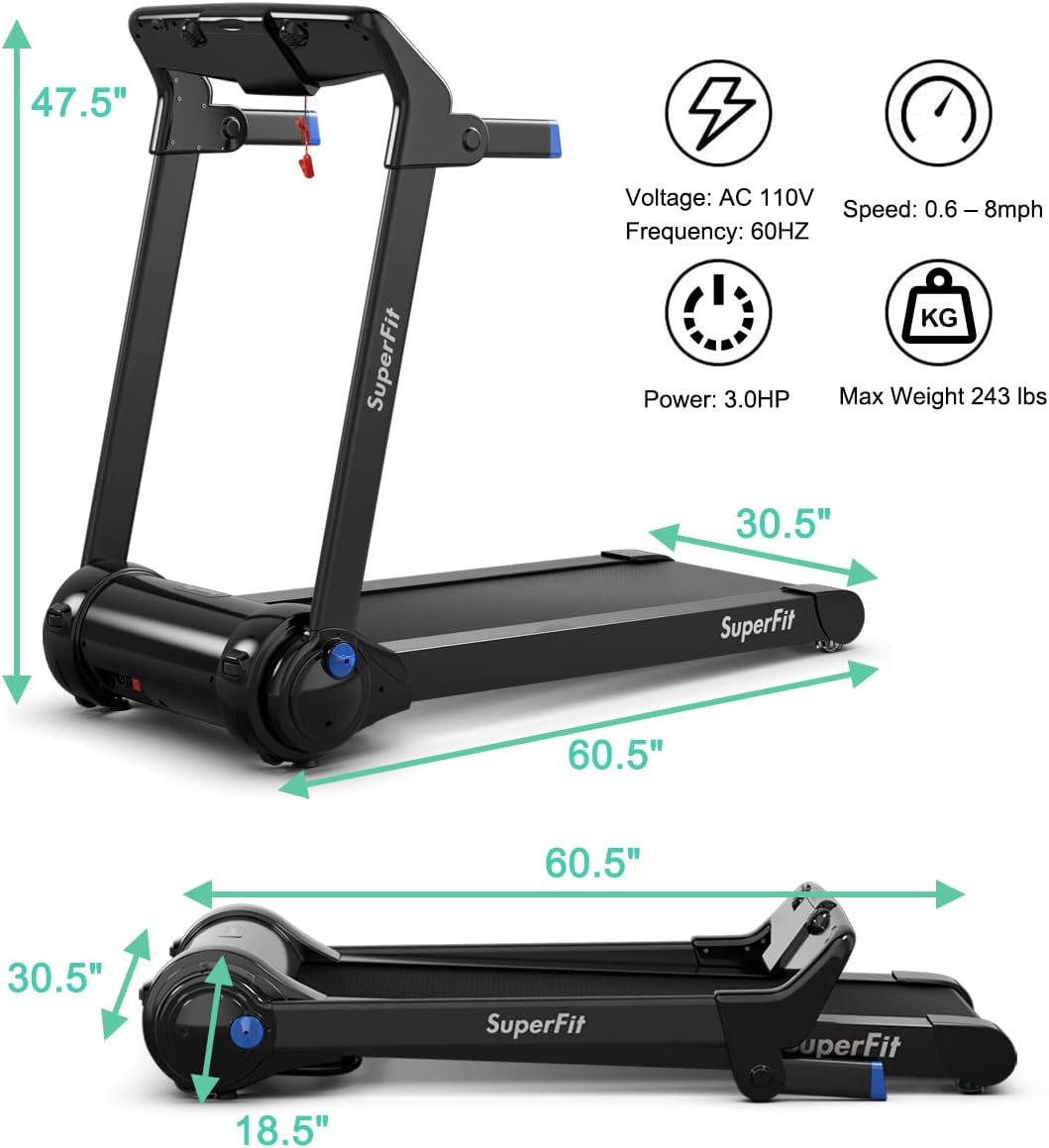 3.0HP Motorized Folding Treadmill, Portable Treadmills