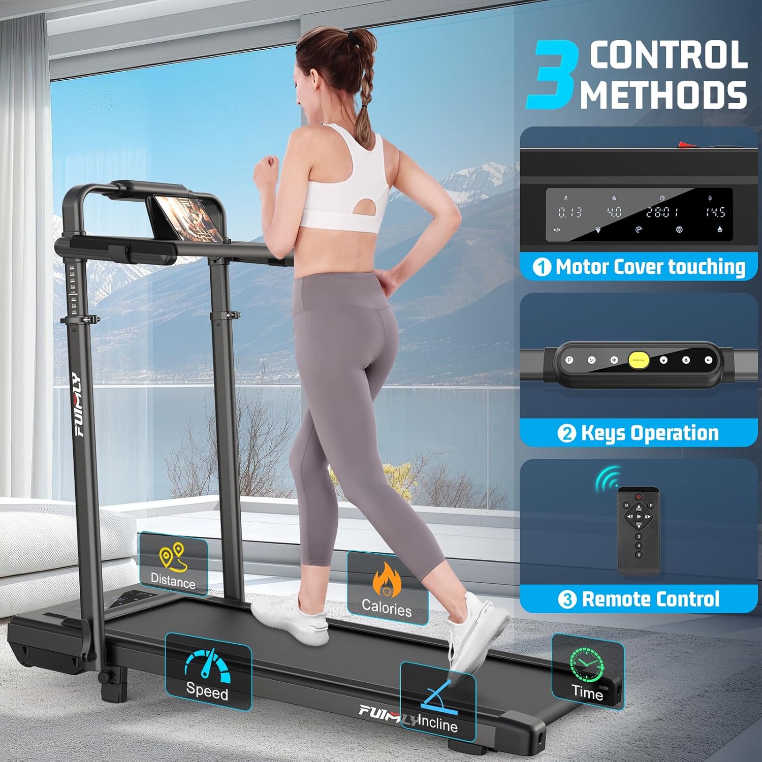 - FOLDABLE TREADMILL WITH ADJUSTABLE HANDRAIL :NEW innovative Funmily treadmill features adjustable handrails that provide personalized support during your workouts. Simply extend the handrails for added stability or fold them away to enjoy the freedom of arm movement while running. Its sleek, foldable design makes storage a breeze, making it perfect for home gyms, apartment, small spaces