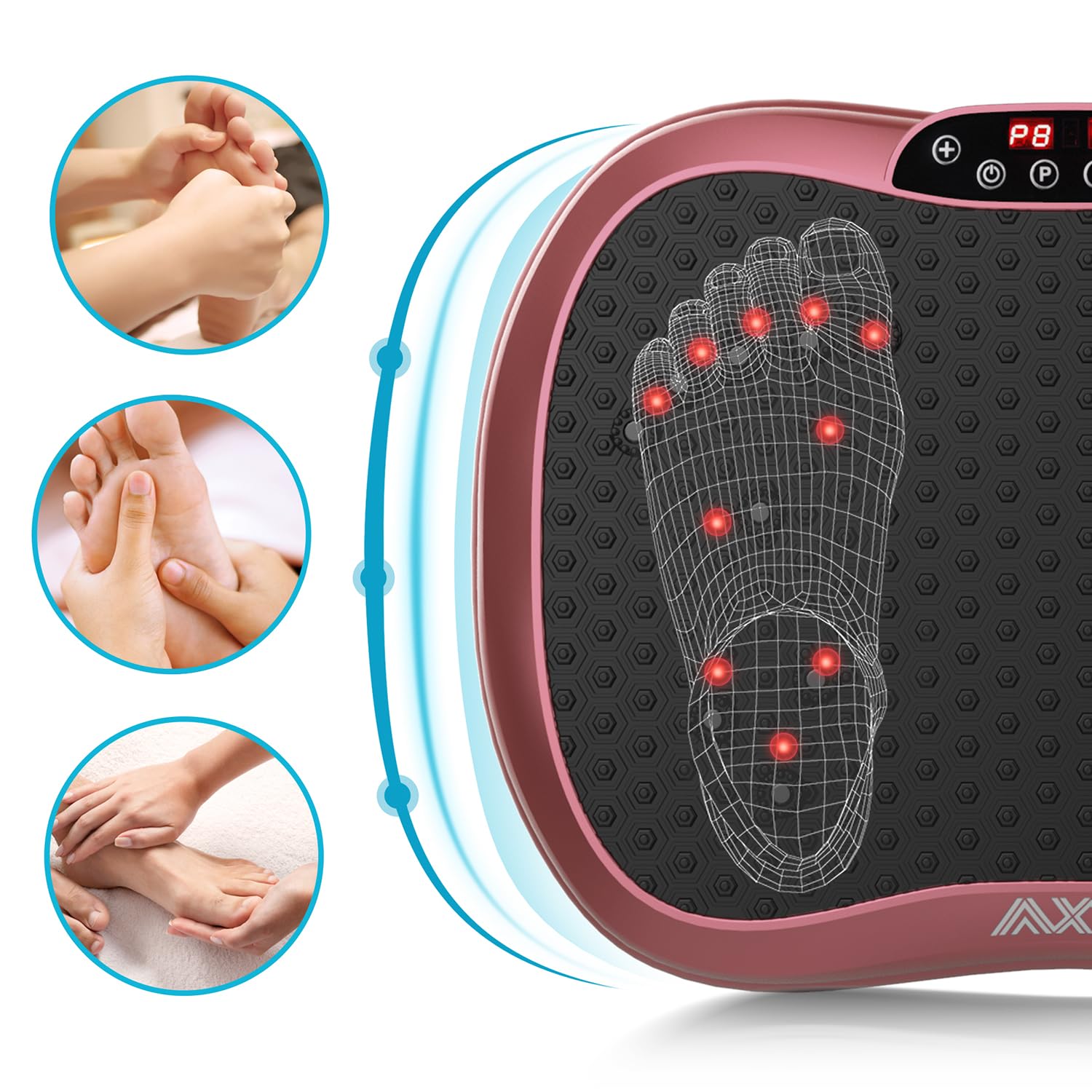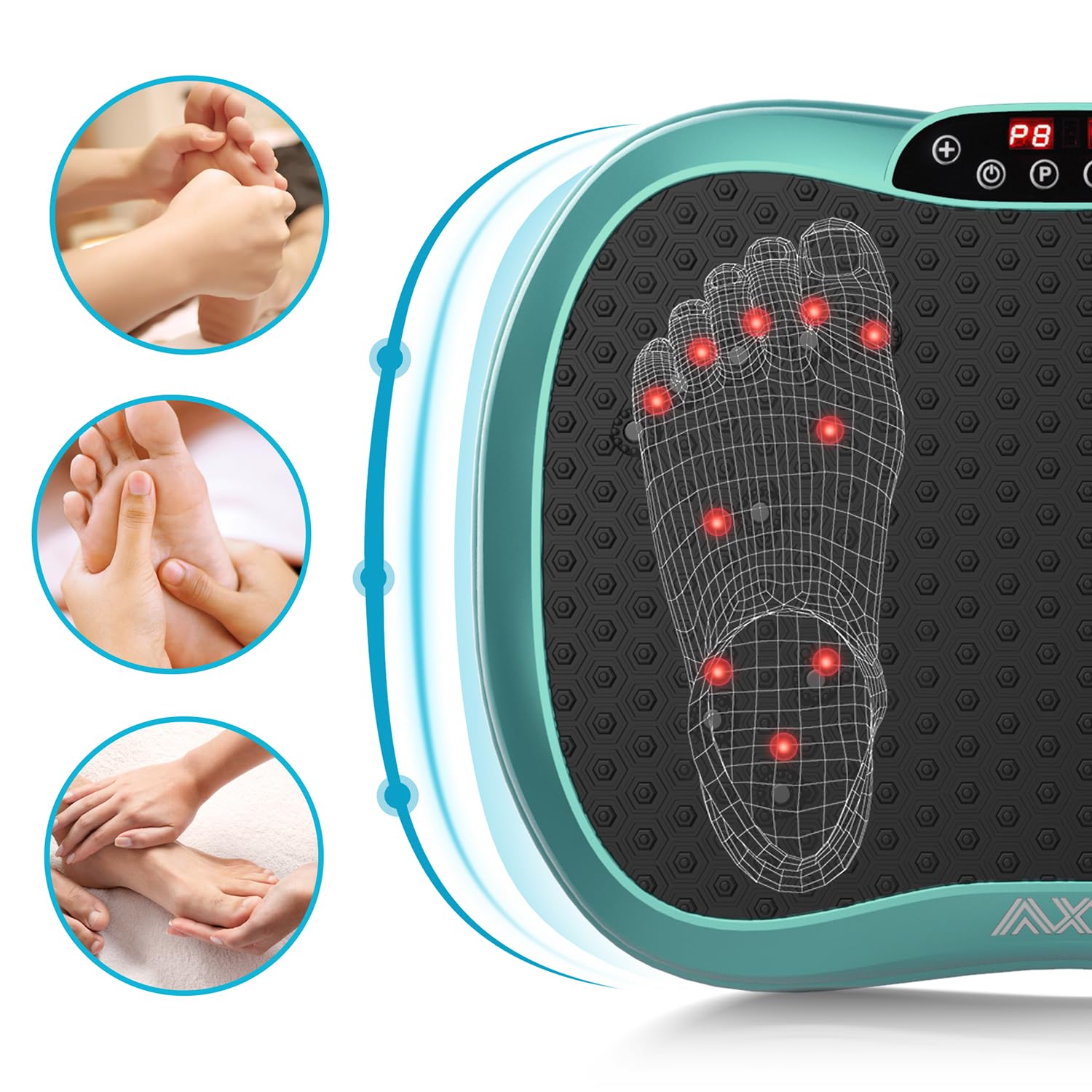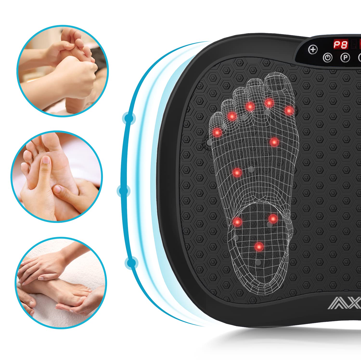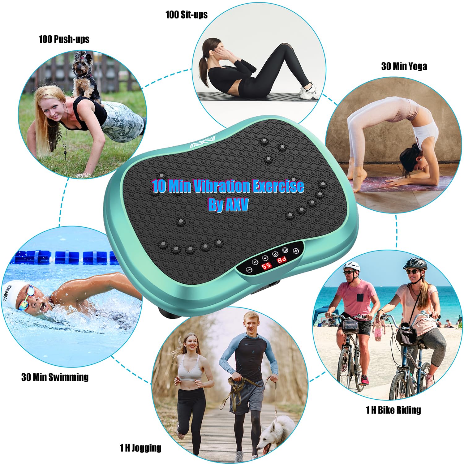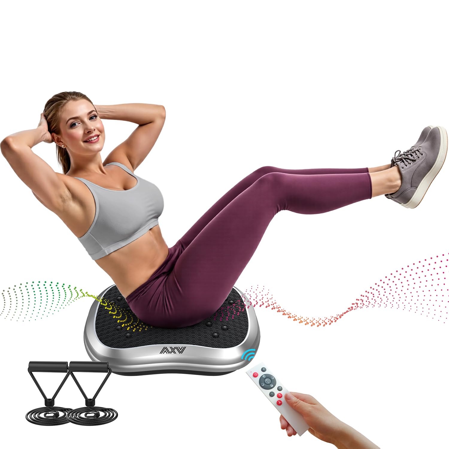 - ✅WHY WE CHOOSE AXV VIBRATION PLATE: Can be connected to phone via BT and used as BT speaker; Magnet health massage function; LED display shows time, speed and burnt fat making your workout visible; Compact size can be used anywhere & easy to carry and store; Anti-slip coating designed;Enhanced upgraded Ergonomic design shell ensures more durability and stability; Comes with Remote control ,Resistance Bands and detailed manual...everything you need.