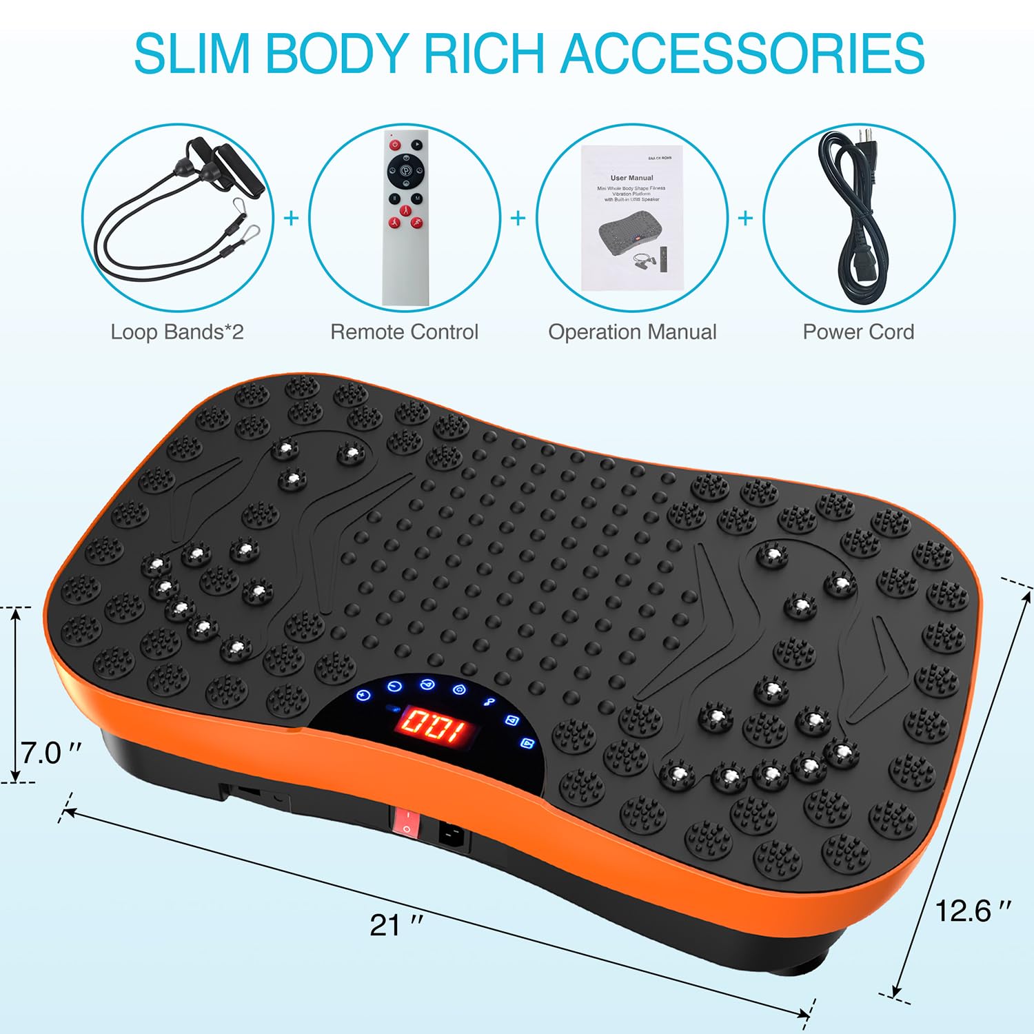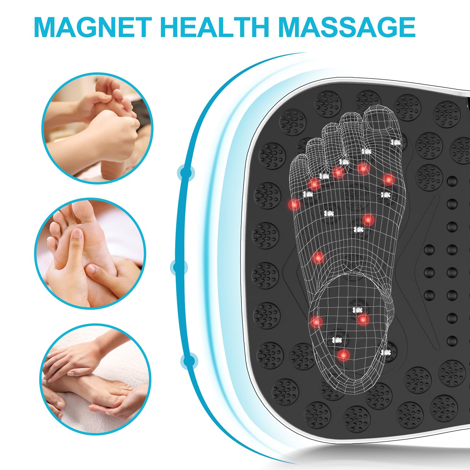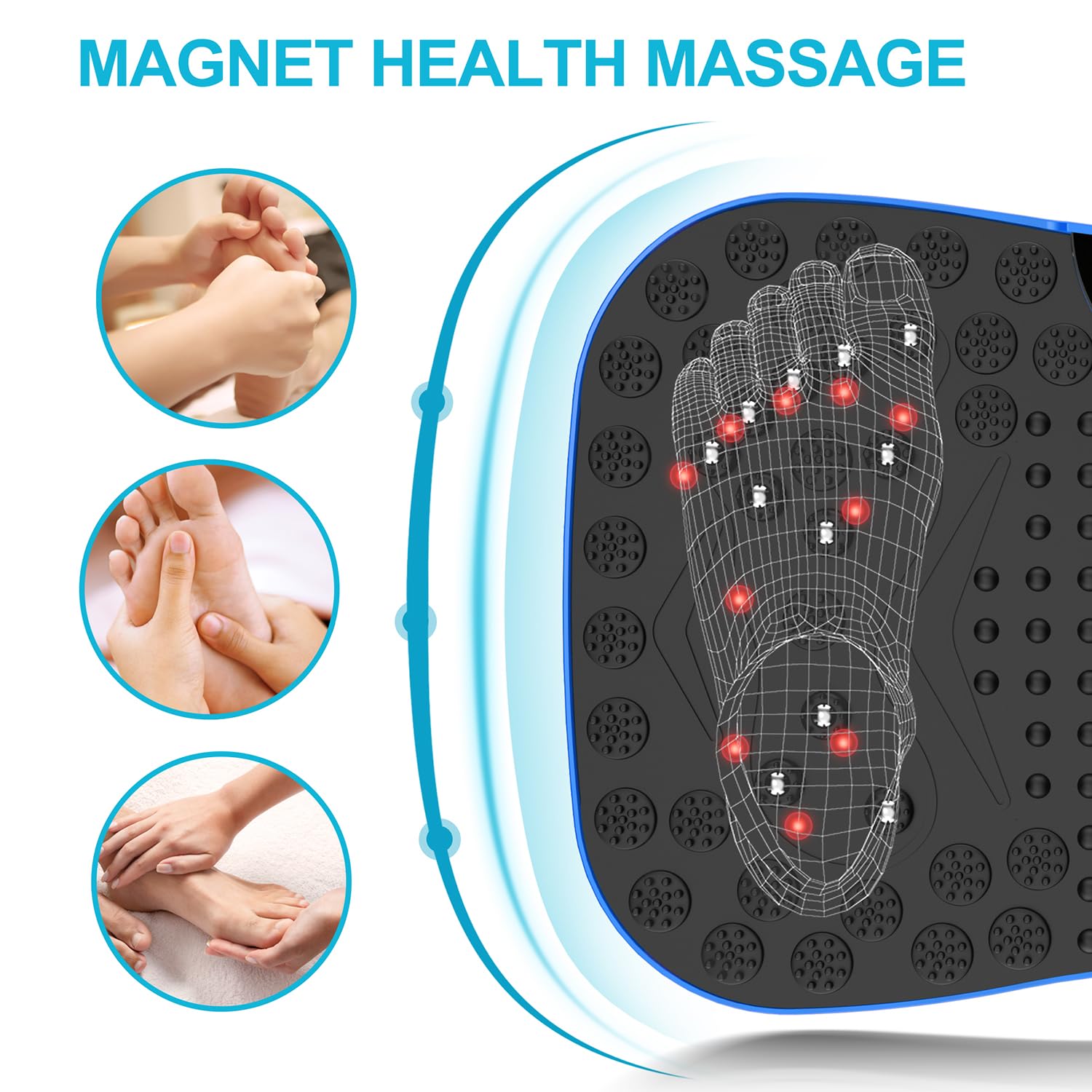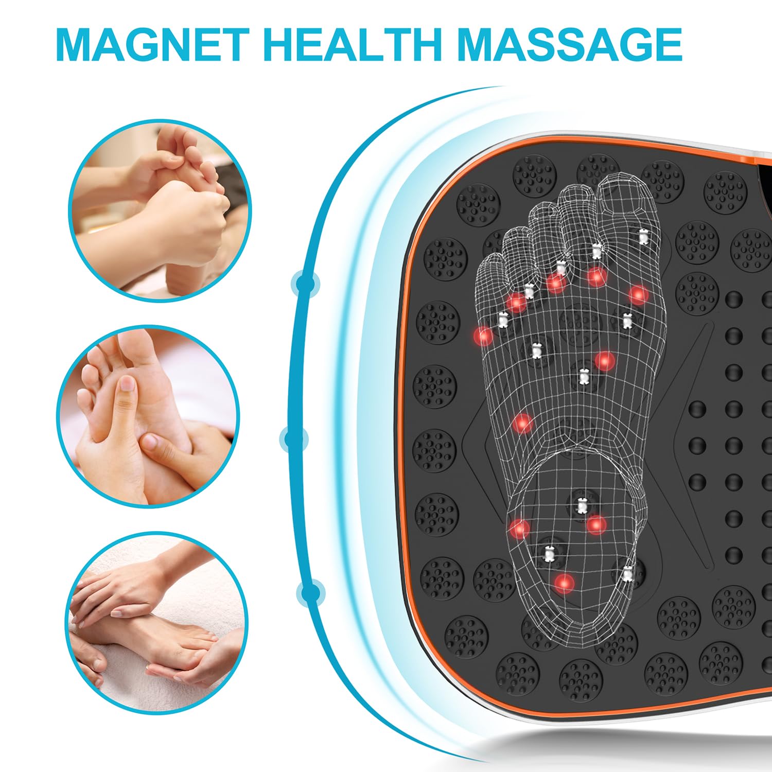 - ✅WHY WE CHOOSE AXV VIBRATION PLATE: Can be connected to phone via BT and used as BT speaker; Magnet health massage function; LED display shows time, speed and burnt fat making your workout visible; Compact size can be used anywhere & easy to carry and store; Anti-slip coating designed;Enhanced upgraded Ergonomic design shell ensures more durability and stability; Comes with Remote control ,Resistance Bands and detailed manual...everything you need.