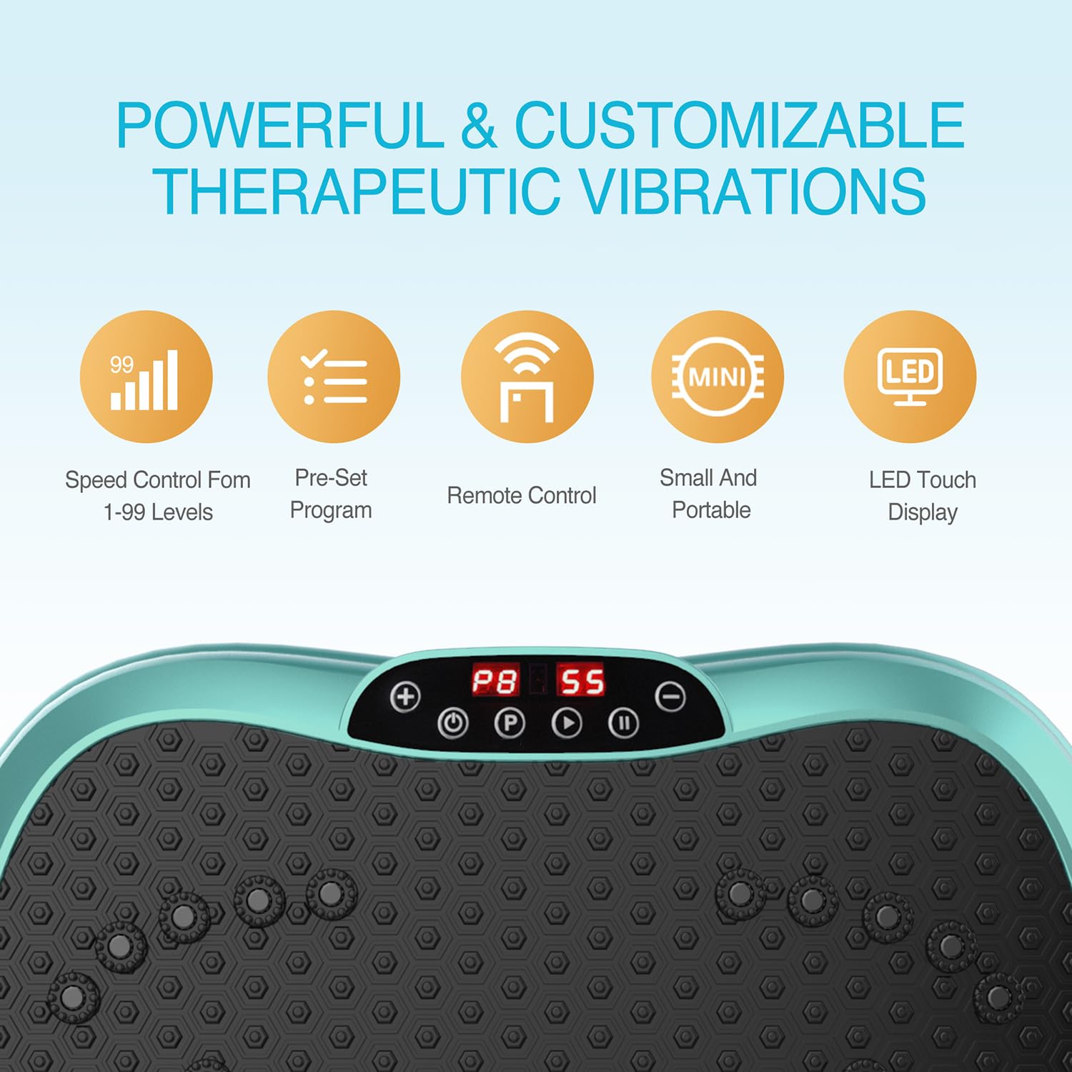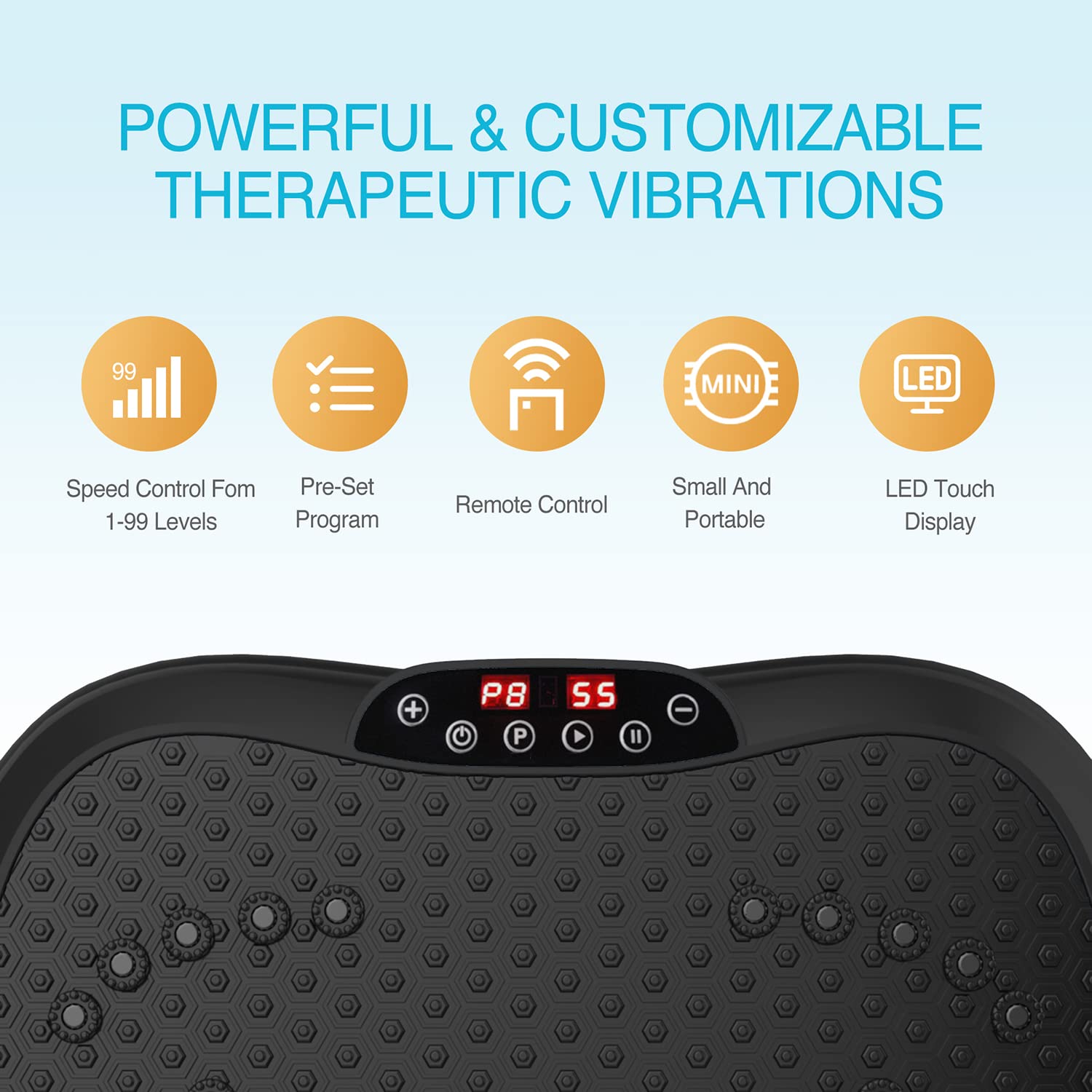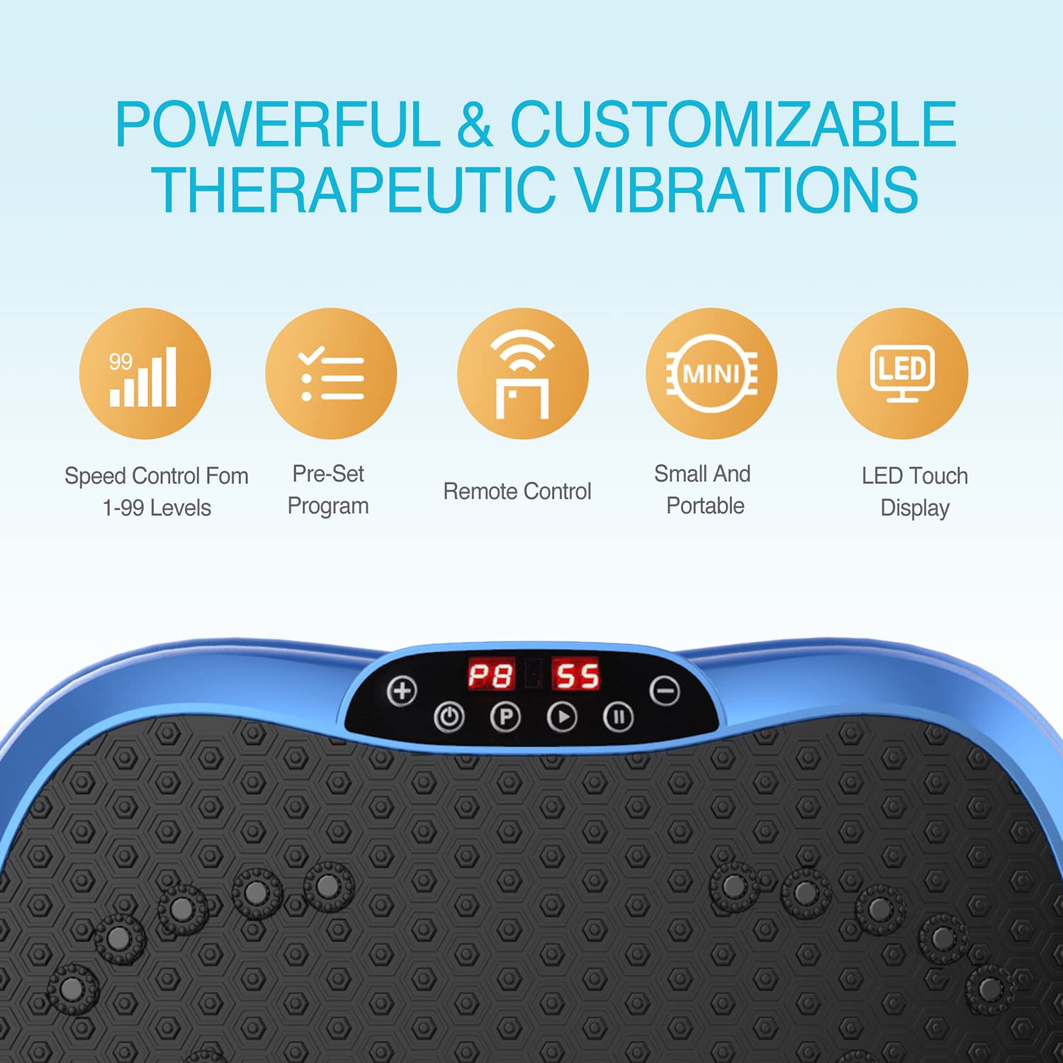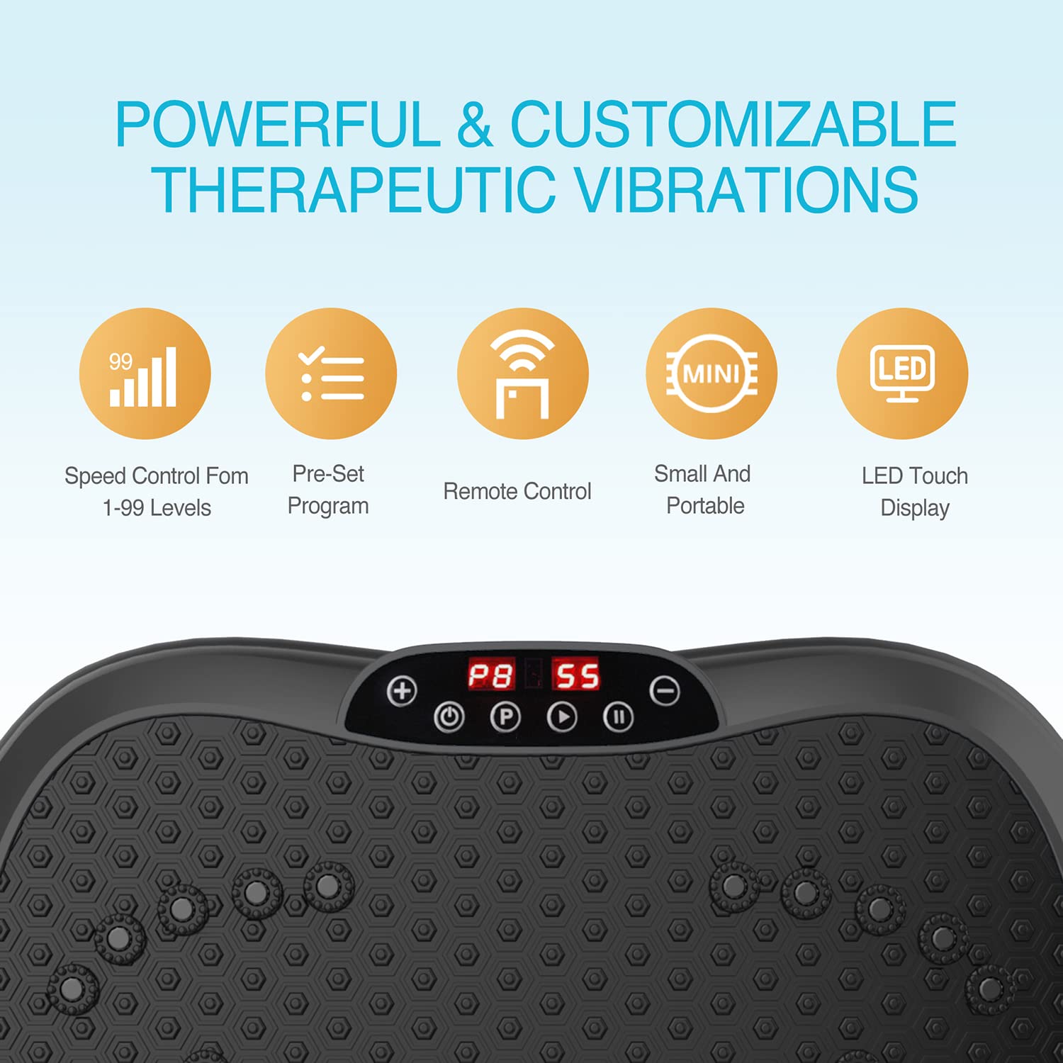 - ✅RICH FUNCTIONAL & HIGH EFFICIENT& REMOTE CONTROL: Adjustable vibration speed (1 to 120), with 2 resistance workout bands, can exercise upper body and lower body at the same time. Offering variety of exercise modes, allow you to try different vibration exercises, With this workout machine, you can have your routine exercise done in only 10 minutes everyday. What you’ll get is a better shape and enhanced metabolism, increased bone mineral density, relieve and reduce stress levels.