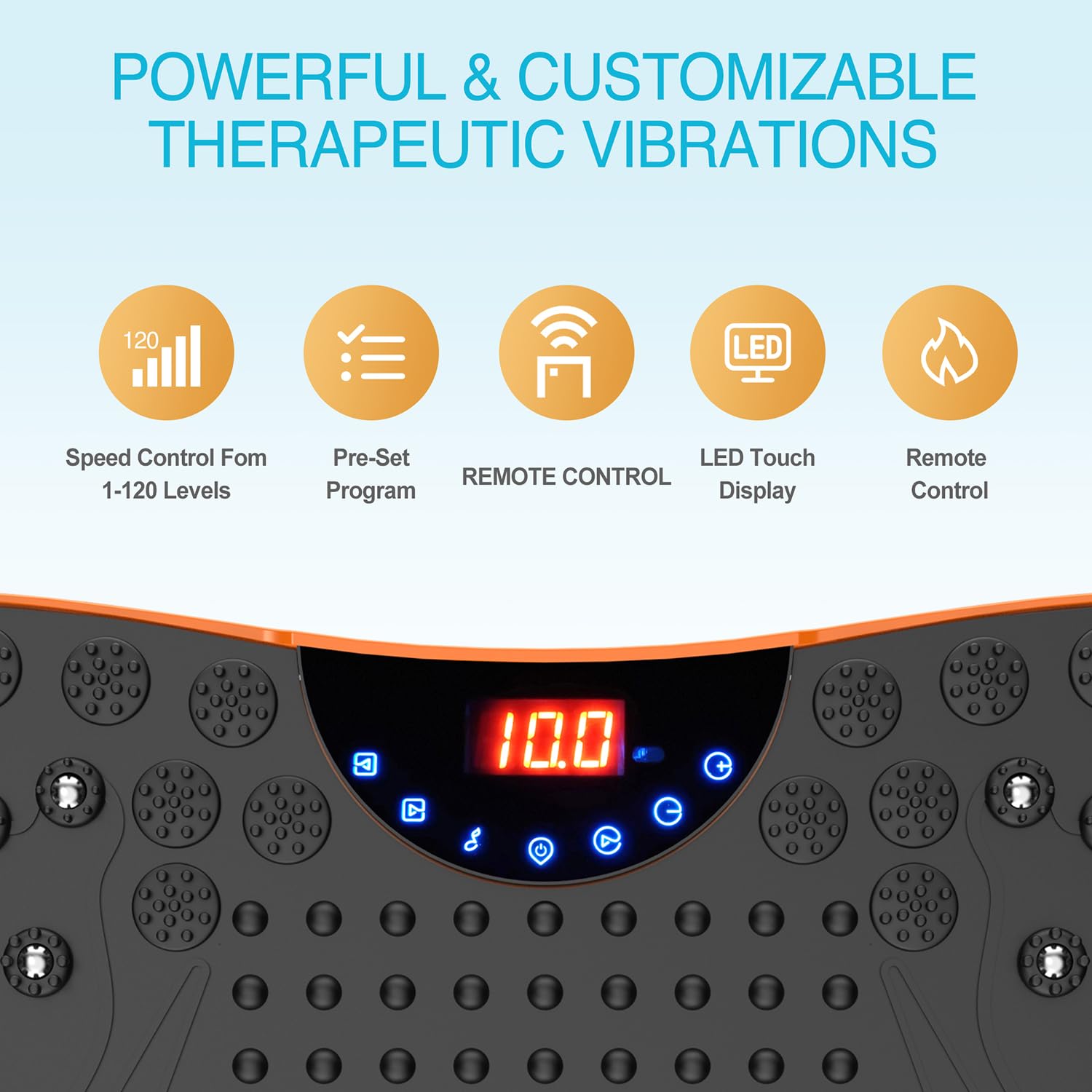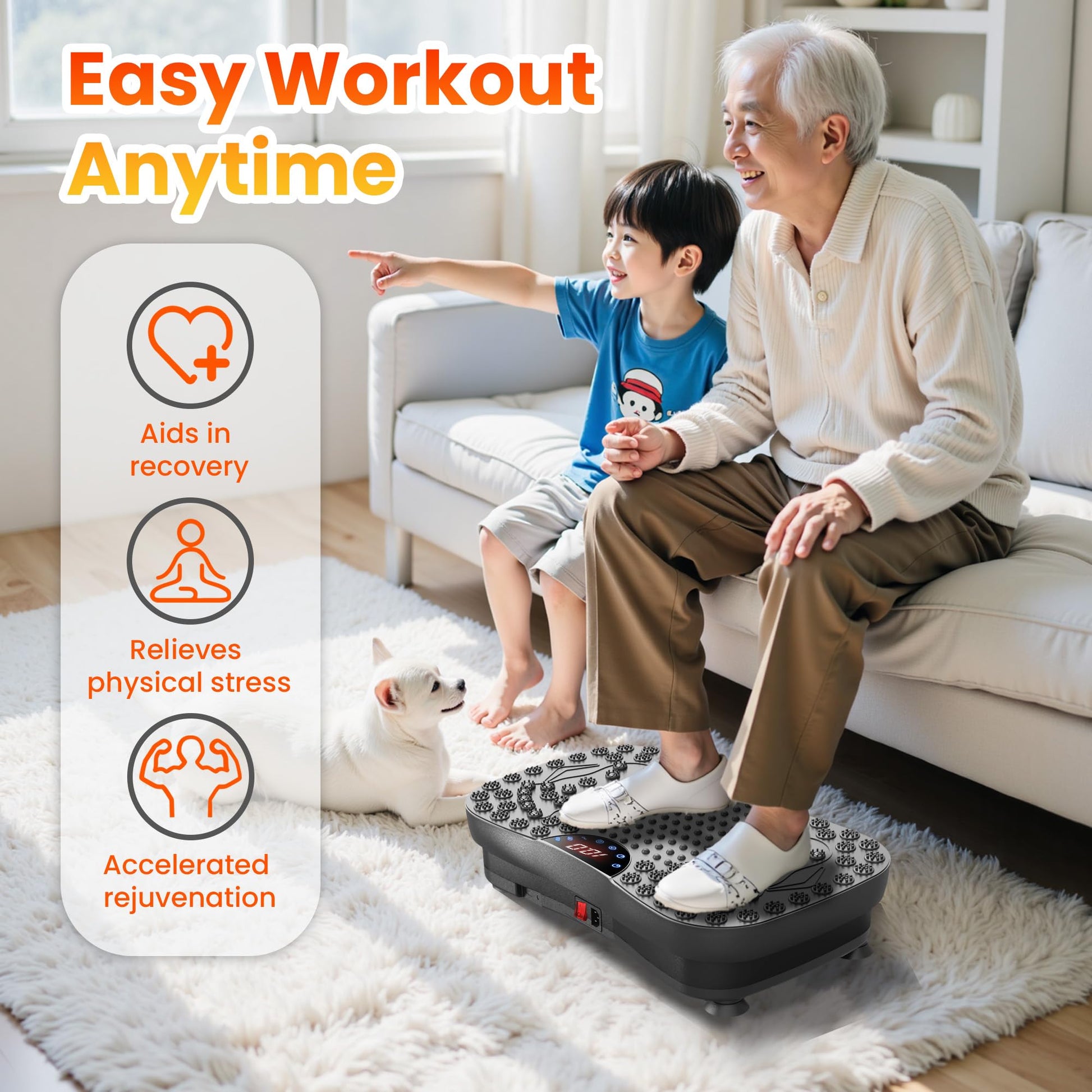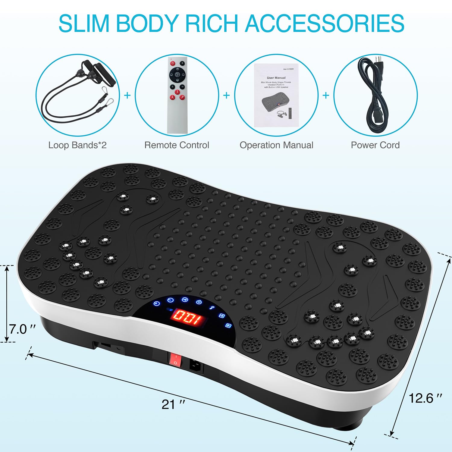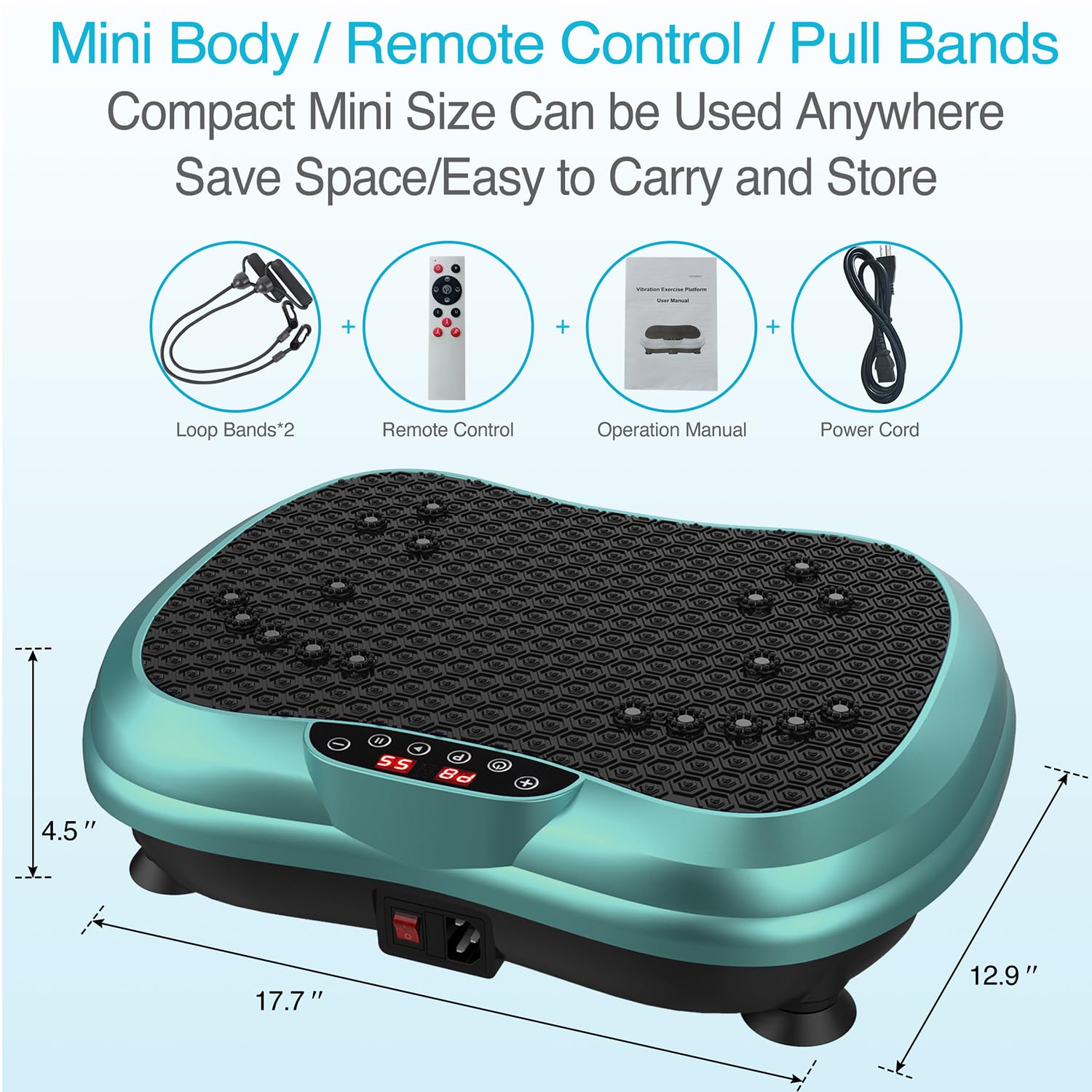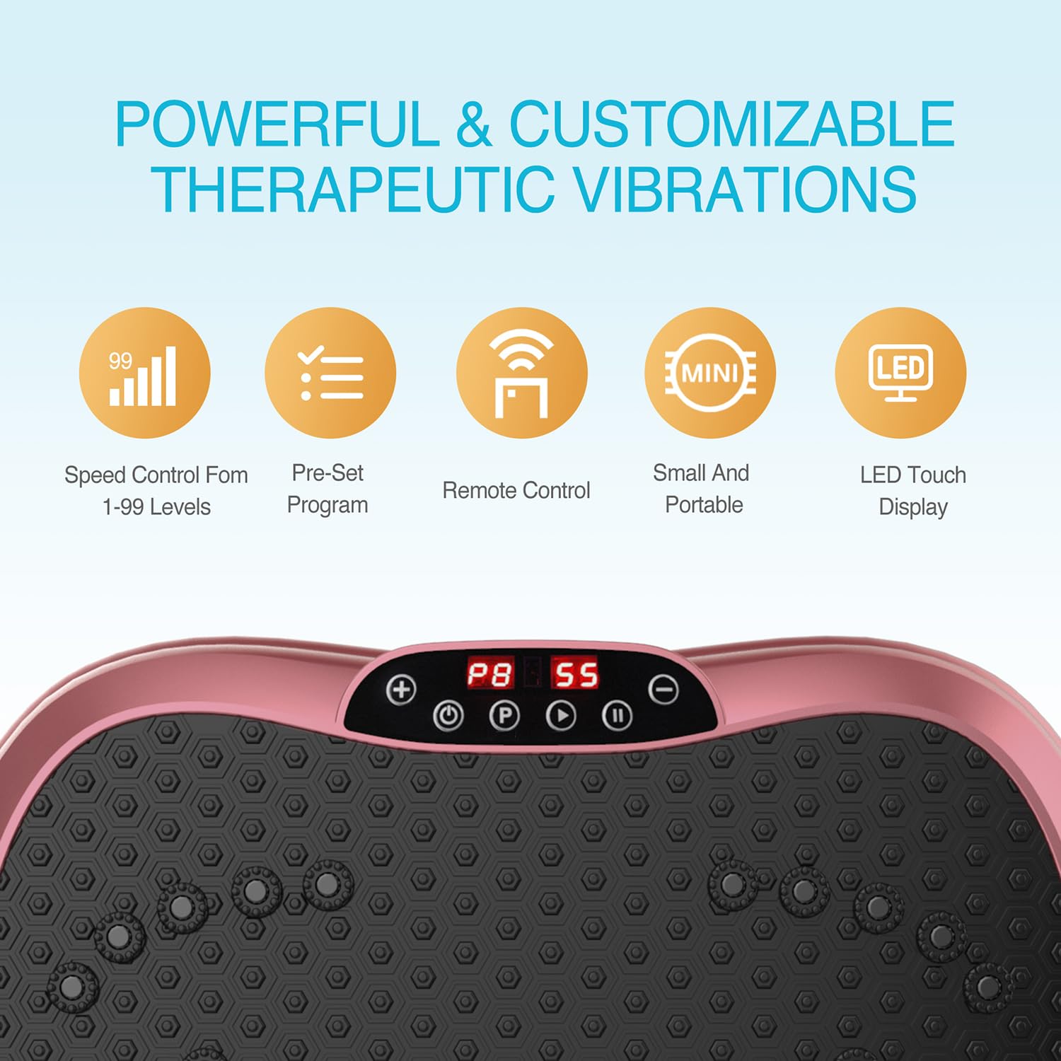 - ✅RICH FUNCTIONAL & HIGH EFFICIENT& REMOTE CONTROL: Adjustable vibration speed (1 to 120), with 2 resistance workout bands, can exercise upper body and lower body at the same time. Offering variety of exercise modes, allow you to try different vibration exercises, With this workout machine, you can have your routine exercise done in only 10 minutes everyday. What you’ll get is a better shape and enhanced metabolism, increased bone mineral density, relieve and reduce stress levels.
