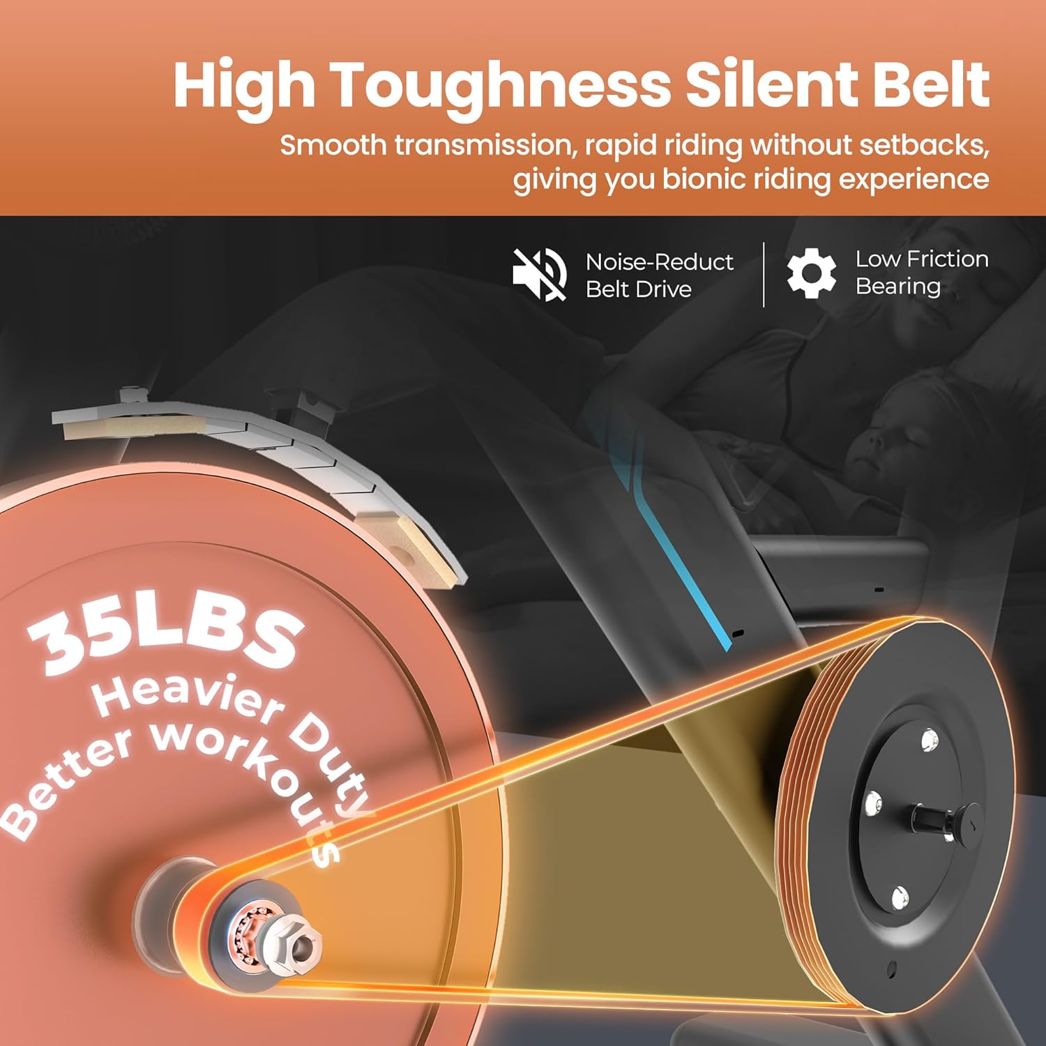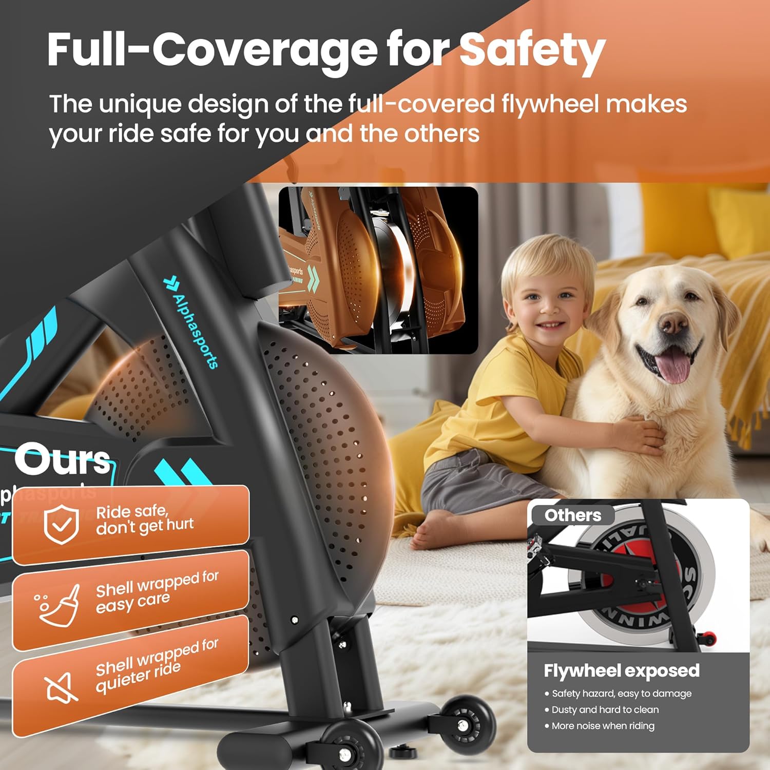 - 【Sturdy & Safe Fully Wrapped Flywheel】:The enclosed design of the flywheel ensures that there is no risk of accidental contact,don't need to worry about causing harm to your pets and family.Built with a robust steel frame and a 30LBS flywheel, this exercise bike guarantees exceptional stability and durability, providing a solid foundation for intense cycling sessions