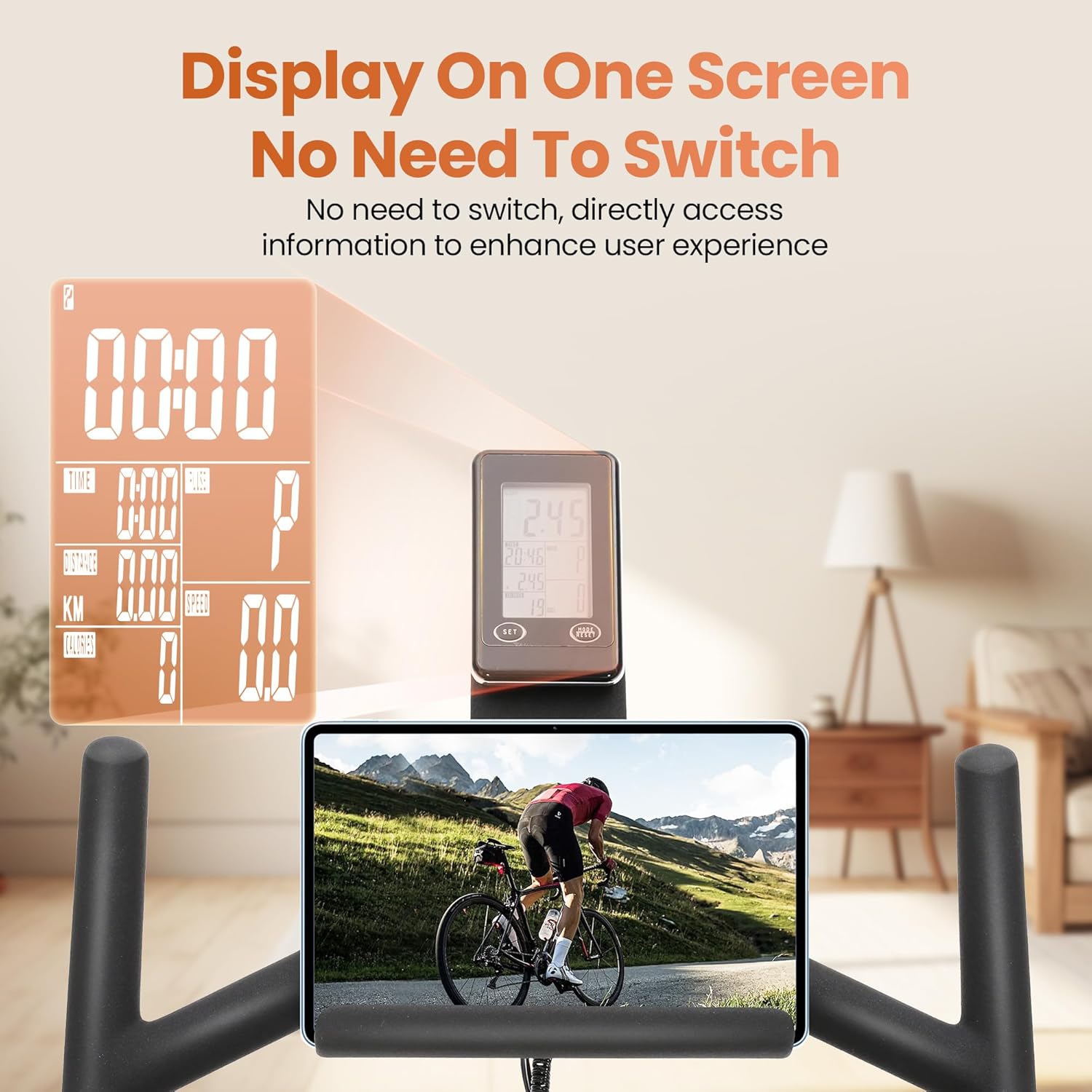 - 【Thoughtful Design】: Tablet Holder holds tablets and mobile phones, allowing you to listen to music or watch videos while exercising.In addition, the transport wheels make it easy to move the bike with ease and effort