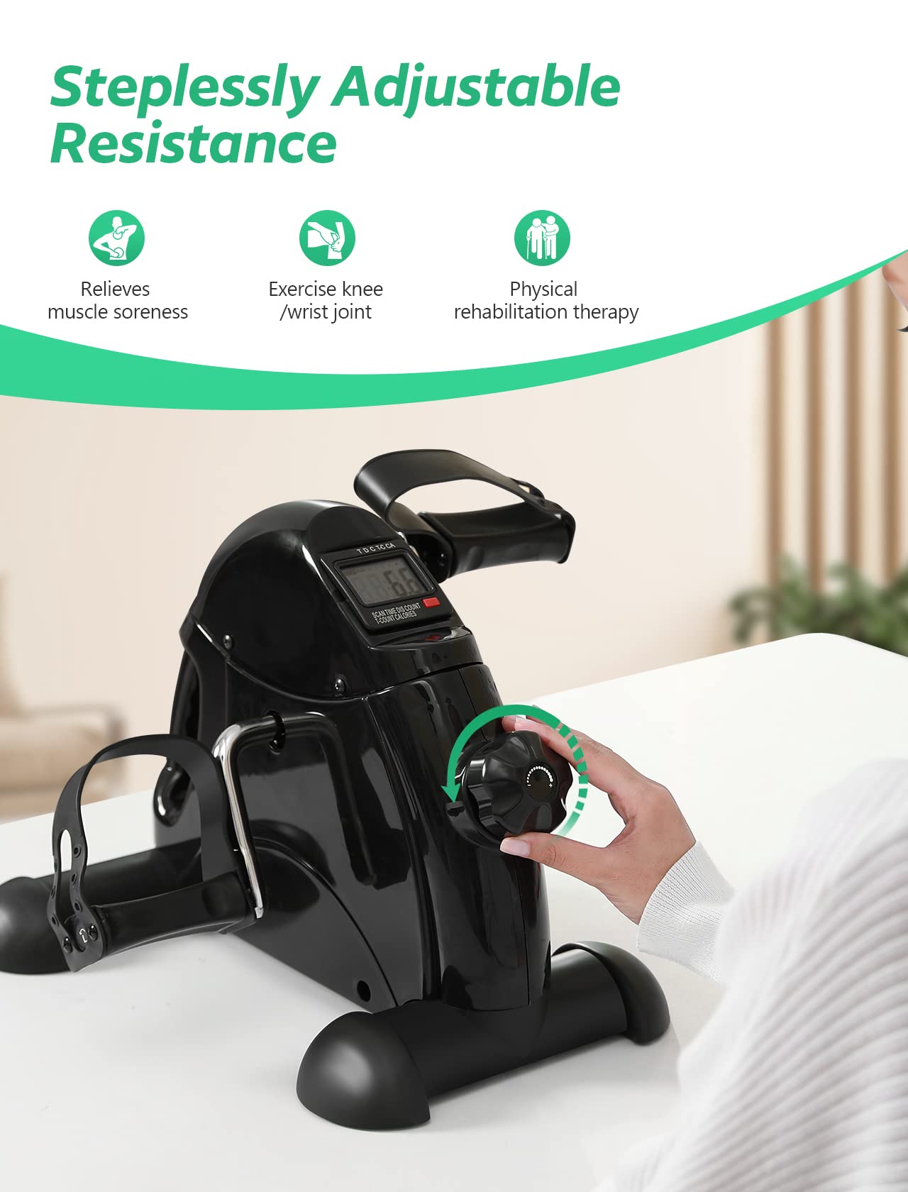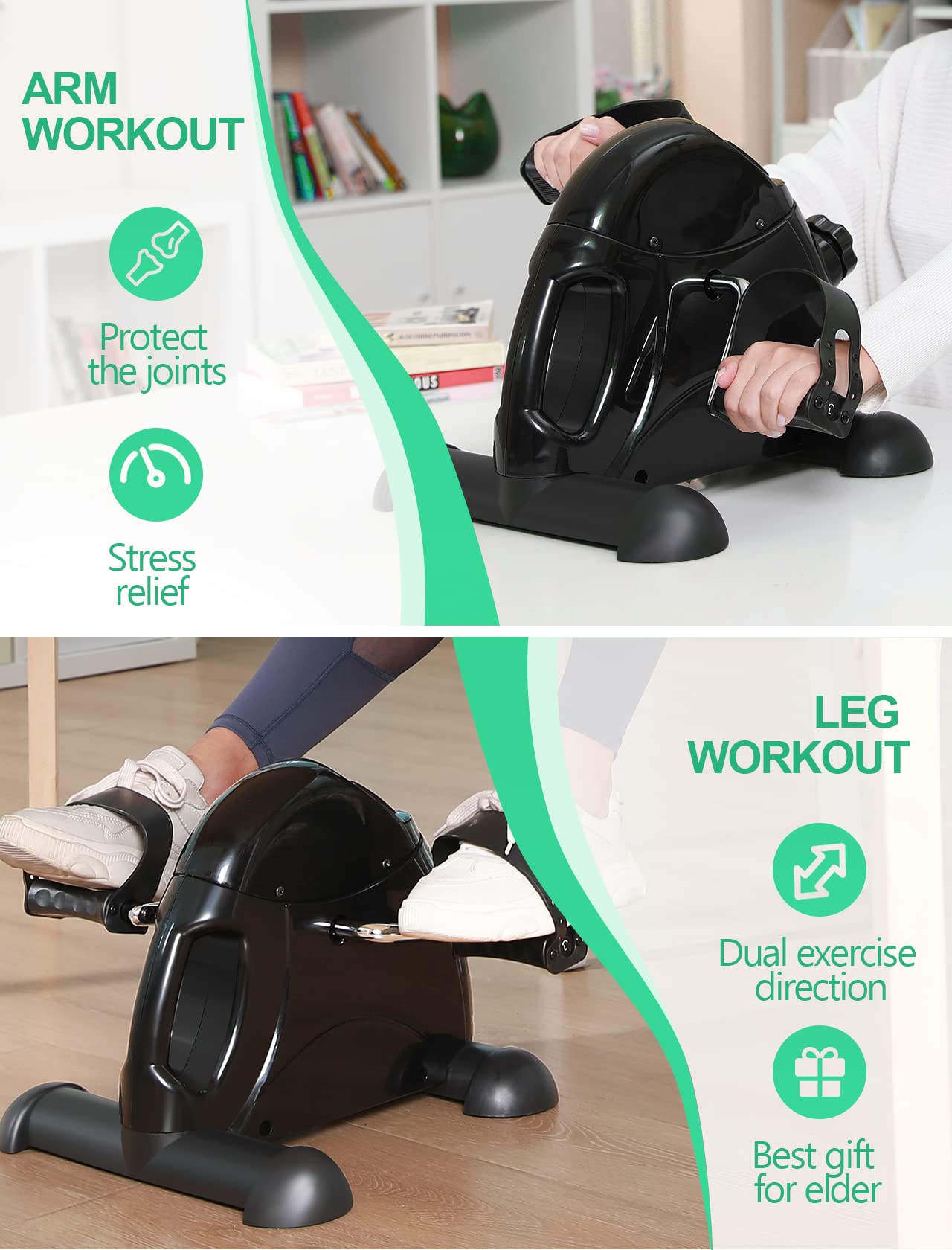 - 【WORK FROM HOME FITNESS】This under desk cycle combining arm and leg exercises, not only allows you to exercise to the muscles and joints of the knees, ankles, feet, but also can be used on the table to exercise the arms, wrists, shoulders and other joints. It is used for office workers, elderly people, people with sports injuries, and rehabilitators to do physical therapy to relieve pain, restore and maintain motor function.