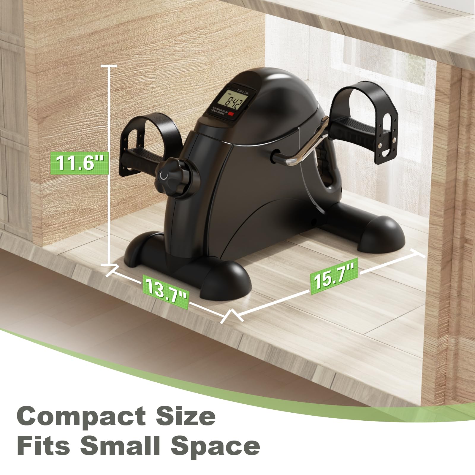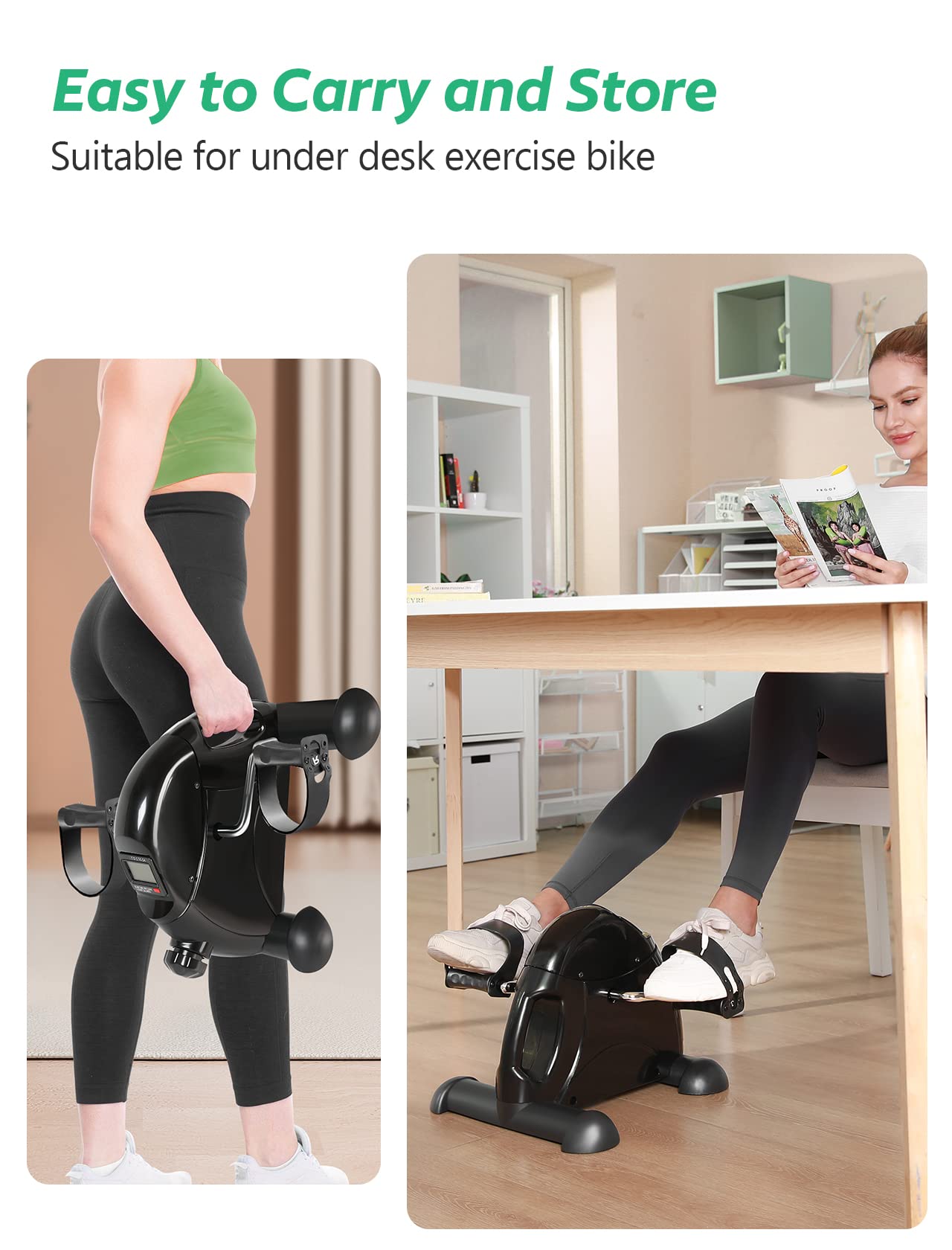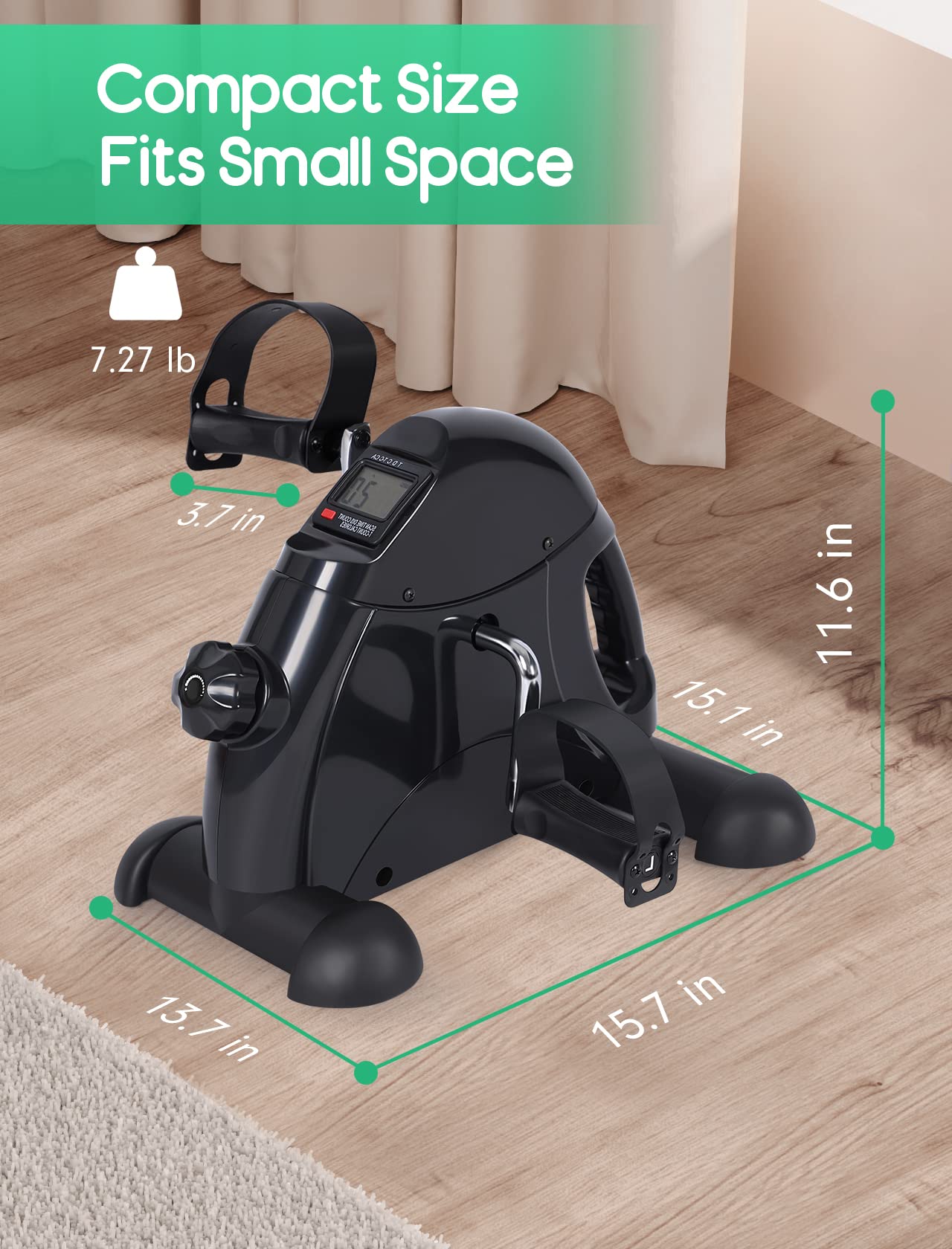 - 【PORTABLE AND EASY TO STORE】Lightweight design, portable and easy to assemble. The portable handle function makes the fitness exercise bike always ready. Product size: 13.7" x 15.7" x 11.6". You can put it under the desk, beside the sofa or in the locker. Small size and space saving - can be used at home or office.