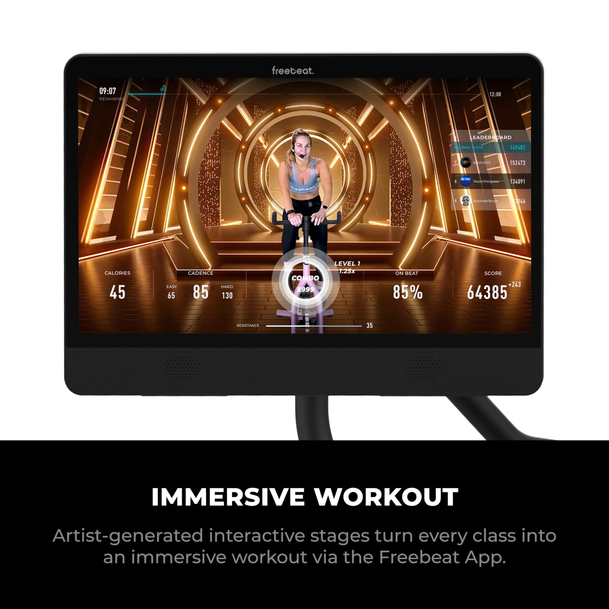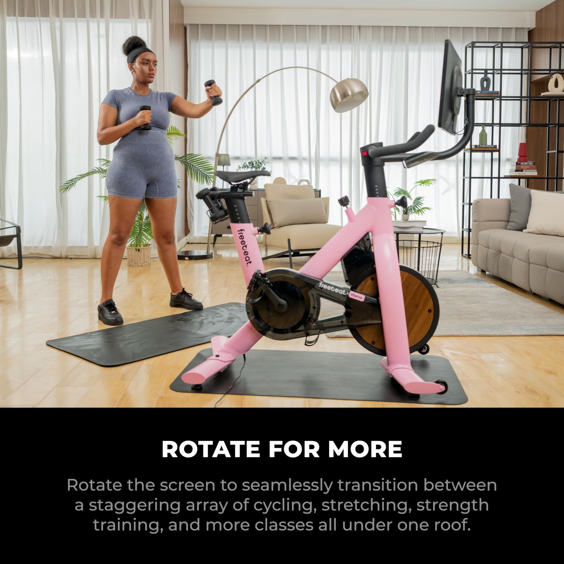 - đ”ă21.5"HD ROTATABLE TOUCHSCREENăArtist-generated interactive stages turn every class into an immersive workout via the 21.5"HD touchscree,Experience a fun interactive game in which you ride to the rhythm and score by your rhythmic pedal accuracy. Rotate the screen to seamlessly transition between a staggering array of cycling, stretching, strength training, and more classes all under one roof.