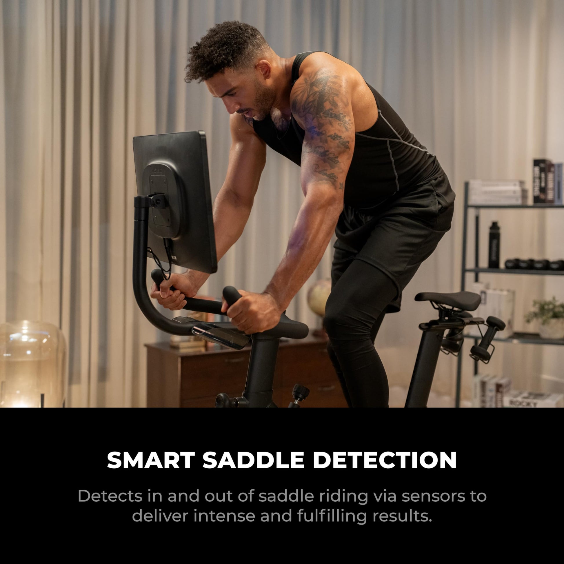 - đ”ăSMART SADDLE DETECTIONăThe Smart Exercise Bike Detects in and out of saddle riding via sensors to deliver intense and fulfilling results.