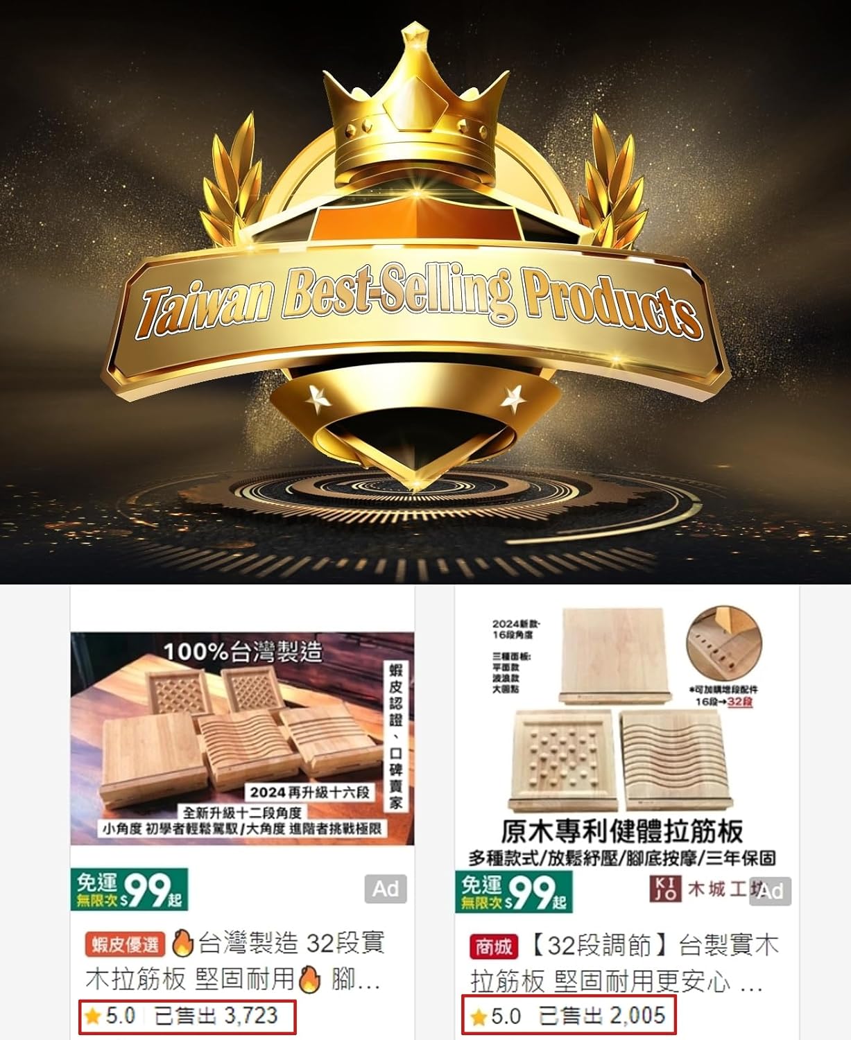- TAIWAN'S NO. 1 BRAND OF SLANT BOARD - More than 10,000 sets have been sold in Taiwan. Our Wooden Slant Board for calf stretching awarded the top ten commemorative labels in Taichung, Taiwan, and obtained Taiwan patent certificate, certificate number D220706.