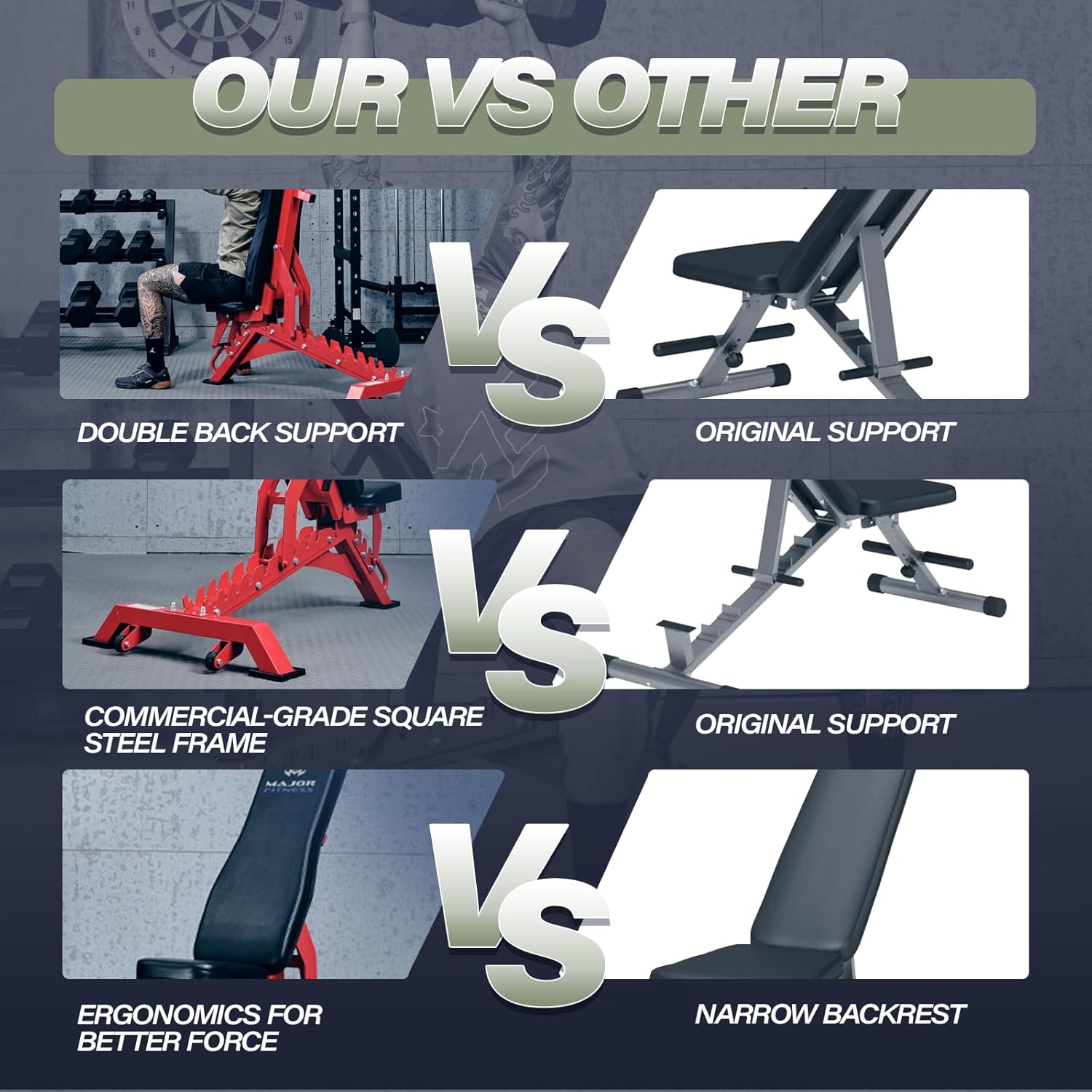 MAJOR FITNESS Weight Bench, Adjustable Workout Bench