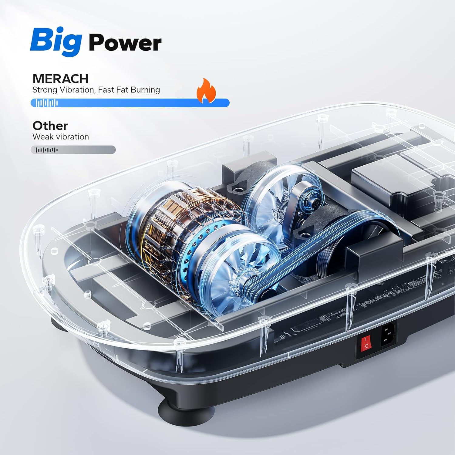 - [Powerful Fat Burning & Efficient Toning] Equipped with a high-torque motor, Merach slim vibration plate platform for weight loss delivers intense oscillations to activate muscles 30x faster than static exercises. The built-in LED display tracks real-time calorie burn and workout duration, helping you visualize progress instantly. Stay motivated—achieve visible toning results with 15-minute targeted sessions, perfect for busy professionals and fitness-driven users.