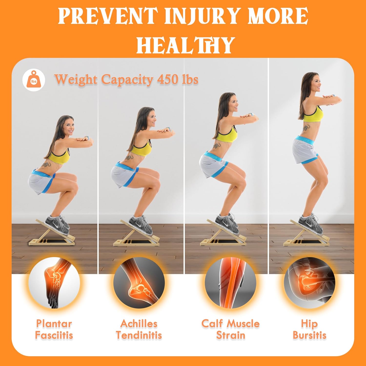 - DEMONSTRATED HEALTH BENEFITS - The calf stretcher slant board is not only useful for stretching before and after exercise but also helps the body recover from plantar fasciitis, Achilles tendon injuries, shin splints, calf strains and other foot and ankle injuries and pain