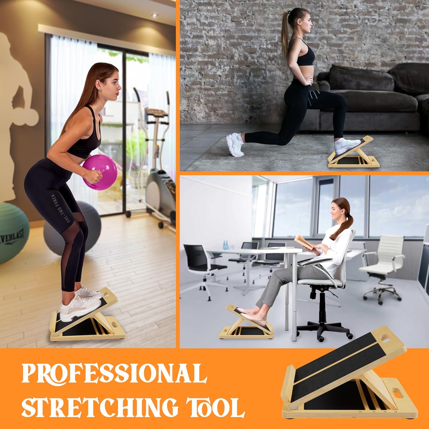 - IDEAL FOR ALL AGES AND FITNESS LEVELS - This multi-functional calf stretch board measures 15"(deep) X 12.6"(wide) X 1.57"(high) with adjustable to 4 positions: 20°, 30°, 35° and 40°. Suitable for all fitness levels from beginner to advanced