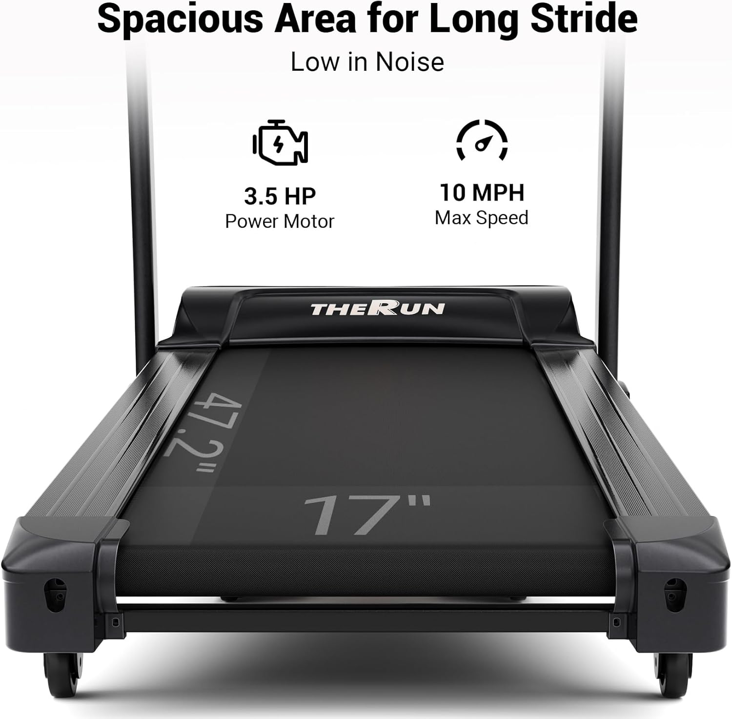 - Quiet Dual Motor Bear 300 lbs Weight: THERUN treadmills for home features strong alloy steel frame and components to bear about 300 lbs, ready for for marathoners, sprinters, long distances runner and daily race trainer, 3.5 HP motors run the belt and power the incline easily, the noise may be ignored when running indoors
