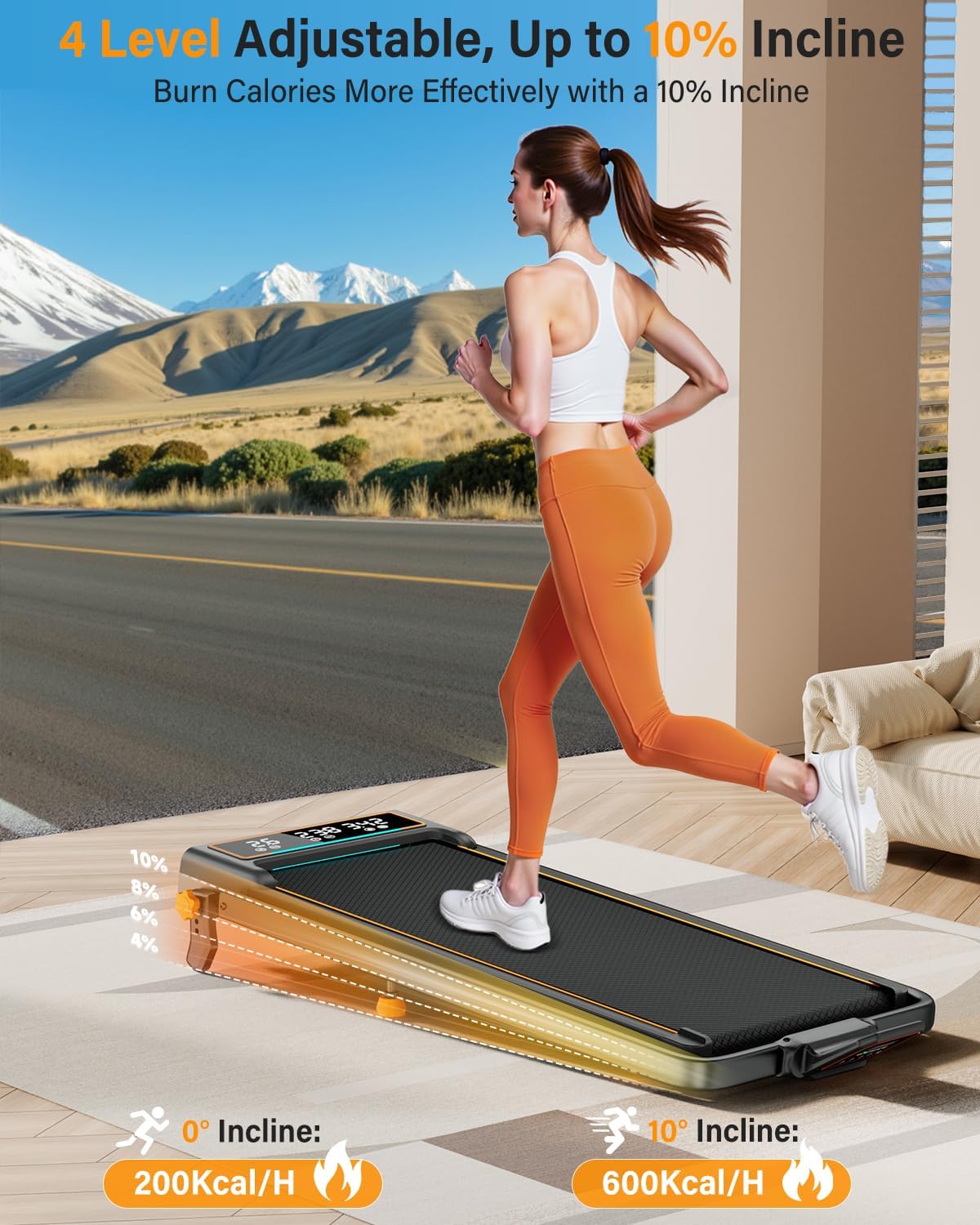 - 🏃♂️【Upgraded 10% Incline Treadmill – Experience the Challenge of Hiking at Home】Unlike standard walking pad treadmills, the Rayspace walking pad features an upgraded incline function with adjustable settings at 4%,6%,8%, and 10% for a more intense workout. Enjoy the benefits of hiking or uphill walking right from the comfort of your home. This incline boost enhances your fitness results and fat-burning efficiency by up to 70%, helping you achieve your fitness goals faster and more effectively!