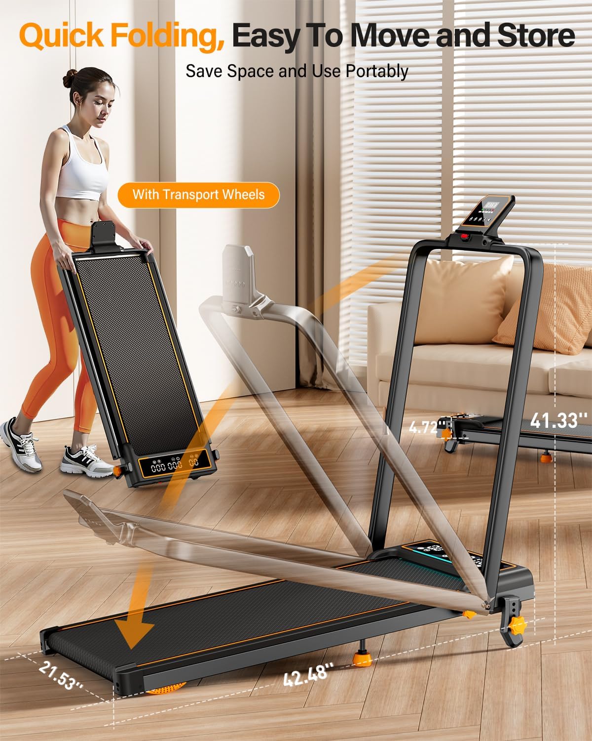 - 🏃♀️【4-in-1 Folding Treadmill for Home – Versatility at Its Best】Our folding treadmill offers a speed range from 0.6 to 6 MPH, making it perfect for working, walking, hiking, and running – covering all your fitness needs. It combines the benefits of a traditional treadmill and walking machine into one, providing a completely new 4-in-1 experience. Stay active regardless of weather conditions, whether it's rainy, snowy, or cold outside, without any workout limitations!