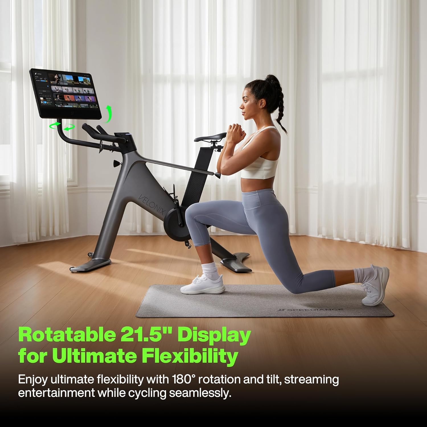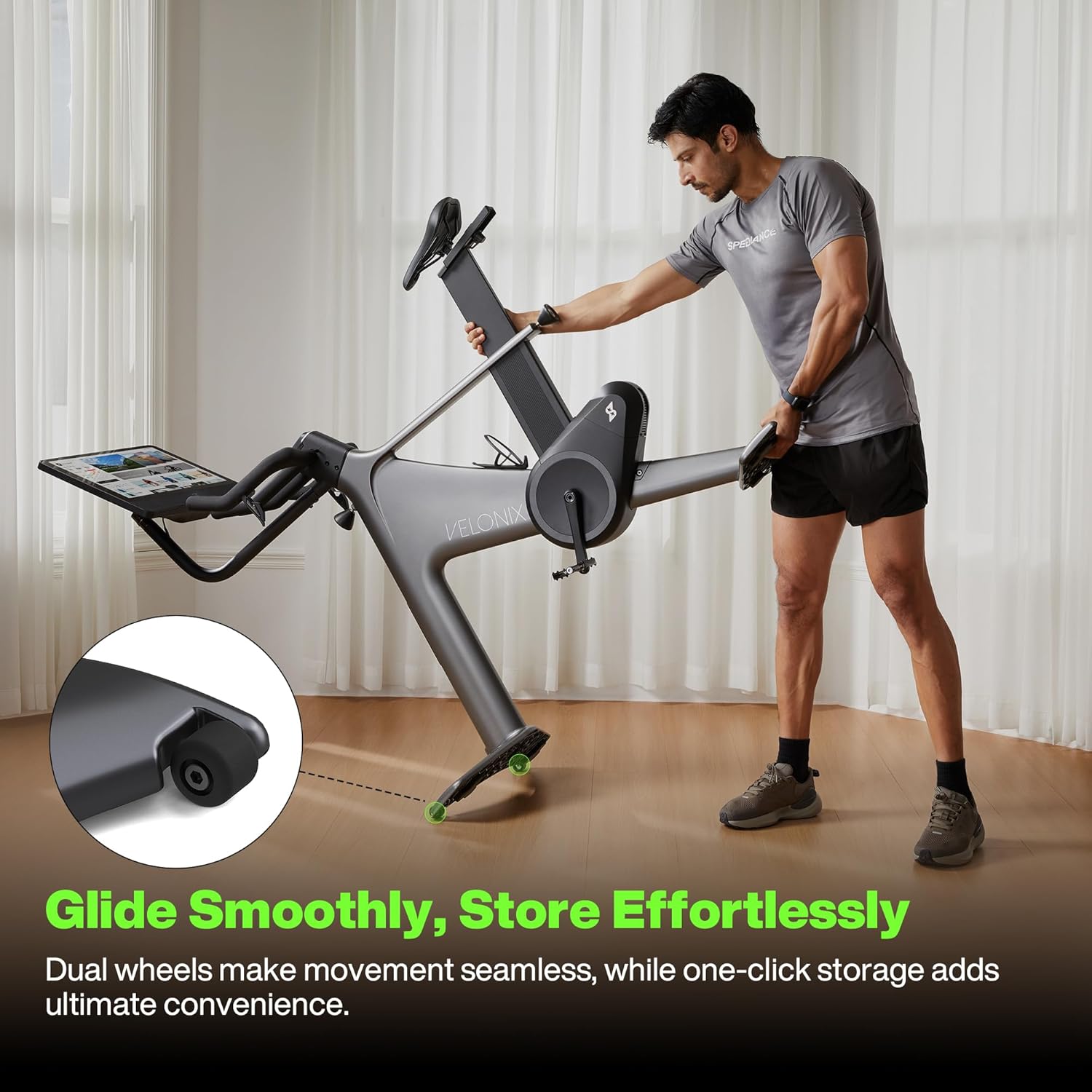 - Smart Home Gym Upgrade - Track your performance in real time with the VeloNix Performance Hub. Access detailed fitness metrics, sync across multiple devices, and enjoy built-in entertainment—stream content from popular platforms while you ride, turning your workouts into immersive experiences.