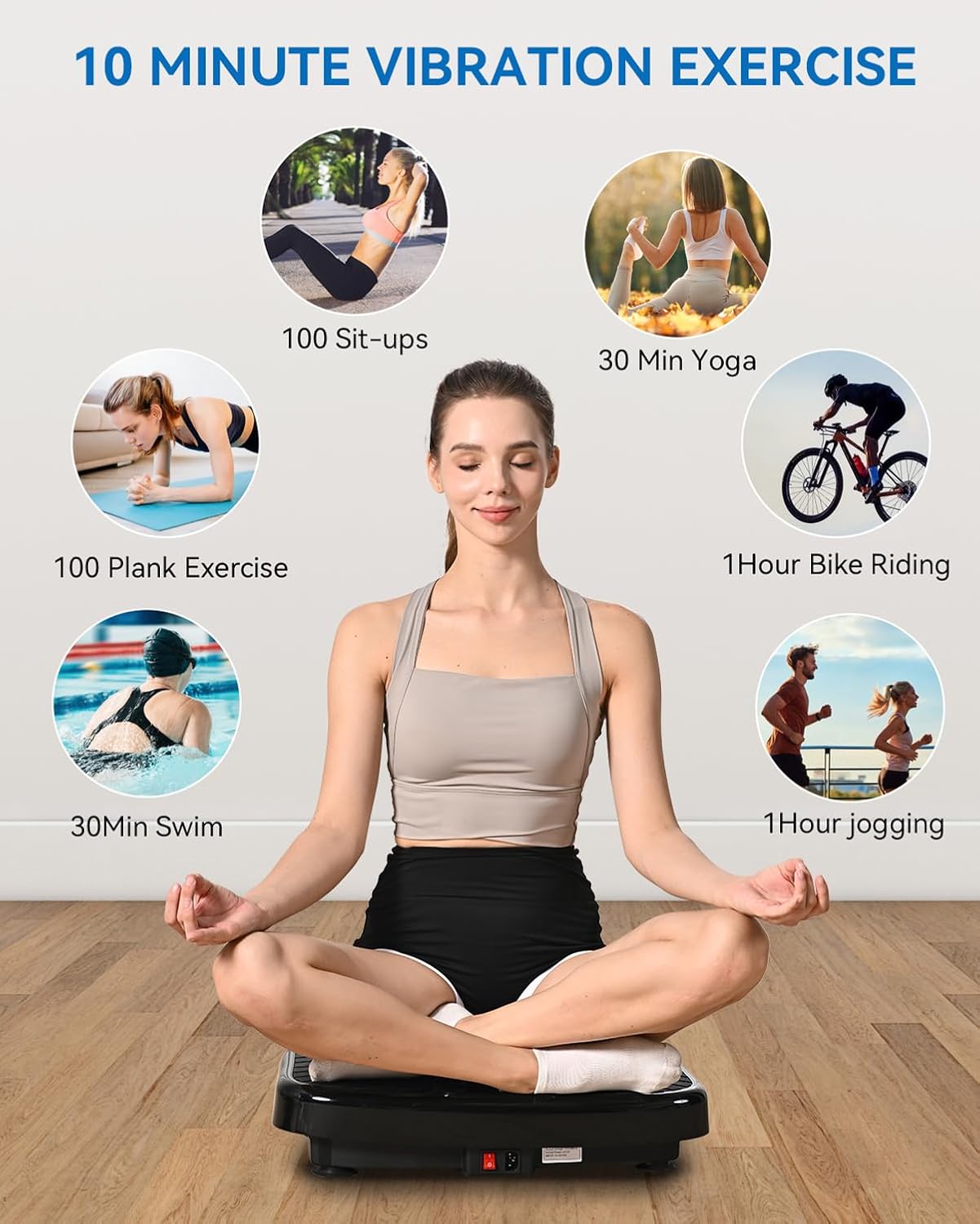 - Efficient Fat Burning & Bluetooth Functionality : Can be connected to phone via BT and used as BT speaker, you can listen to music while exercising. The vibration plate stimulates muscles through high-frequency vibrations, inducing additional muscle contractions and activation. This helps burn calories and fat rapidly, aiding in shedding excess weight faster than running, helping you achieve your fitness goals swiftly