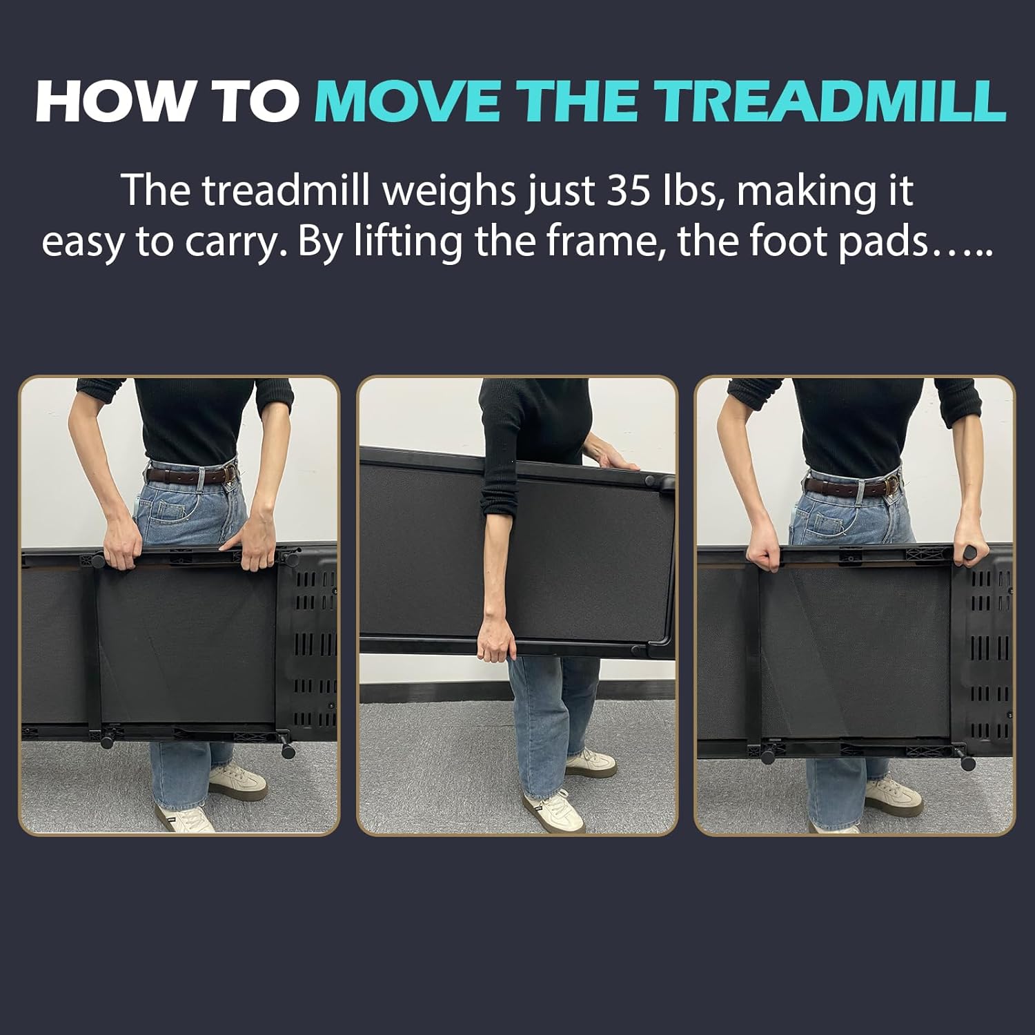 - PORTABLE TREADMILL FOR SMALL SPACE: Easy to Use and Move. Small treadmill only weigh 29LBS can be easily move and stored under desk sofa, bed. upright against the wall. Compact small walking pad for home office.