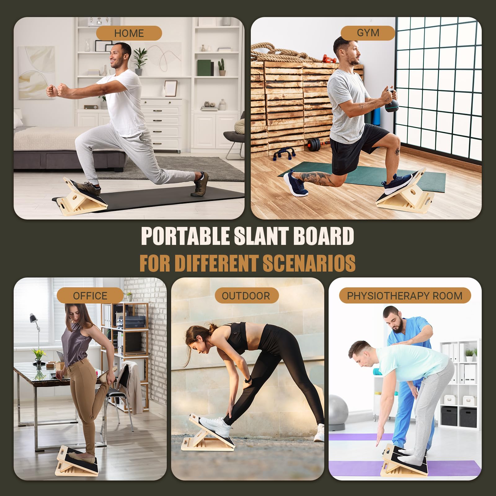 - [Helping Recovery Wooden Slant Board] A slant board for exercise equipment helps you stretch your calves, improve circulation and help the body recover from plantar fasciitis, Achilles tendon injuries, shin splints, calf strains, and other foot and ankle injuries and pain. The posture board can also be used to improve sitting posture and for rehabilitation.